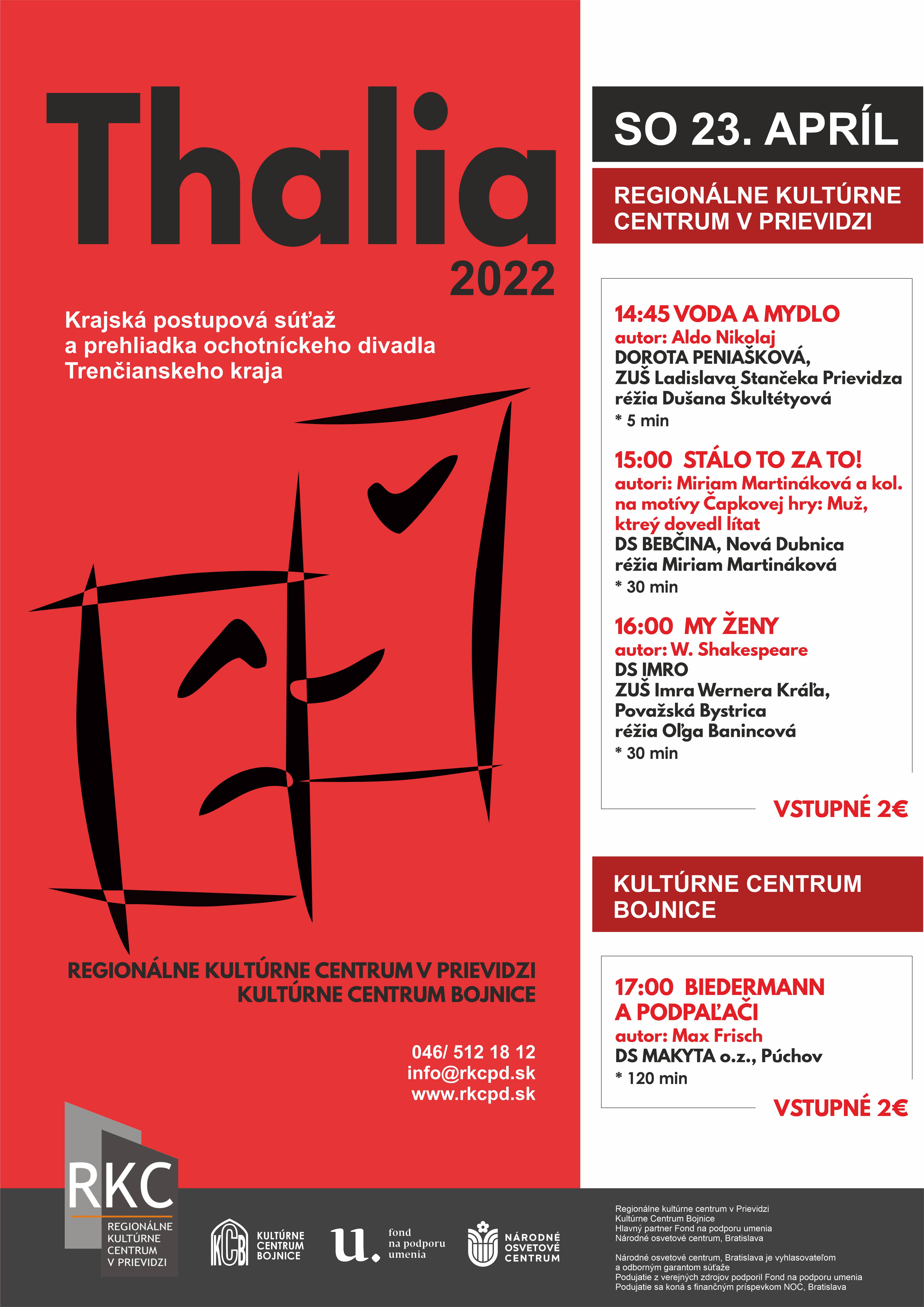 Krajská postupová súťaž a prehliadka ochotníckeho divadla Trenčianskeho kraja sa uskutoční dňa 23. apríla 2022 v Regionálnom kultúrnom centre a Kultúrnom centre v Bojniciach.