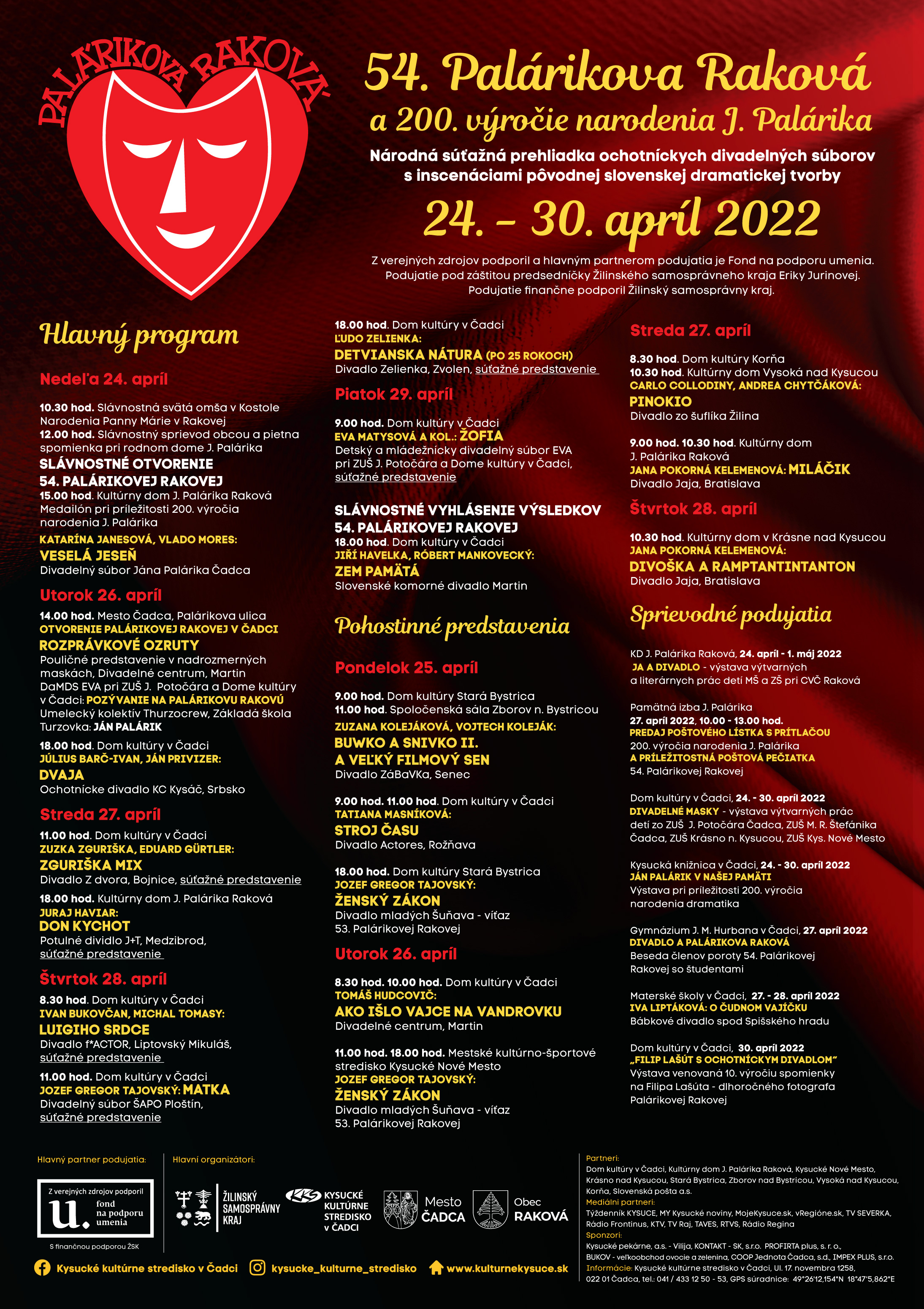 Palárikova Raková v tomto roku oslavuje svoje 54. pokračovanie a tiež si pripomíname 200. rokov od narodenia Jána Palárika. Prehliadka sa koná v termíne od 24. do 30. apríla 2022 v regióne Kysuce.