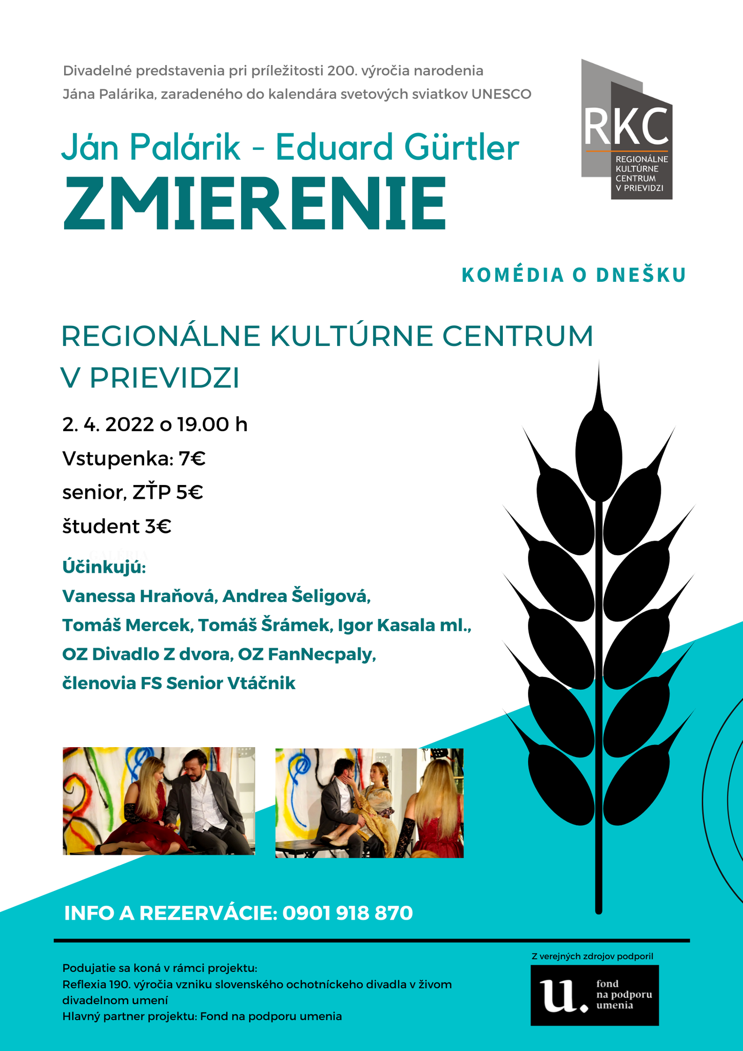 Inscenácia Zmierenie je súčasťou spoločného projektu RKC v Prievidzi a Divadla Z dvora „Reflexia 190. výročia ochotníckeho divadla na Slovensku v súčasnej divadelnej tvorbe. Repríza sa uskutoční 2. 4. 2022 v Regionálnom kultúrnom centre v Prievidzi.