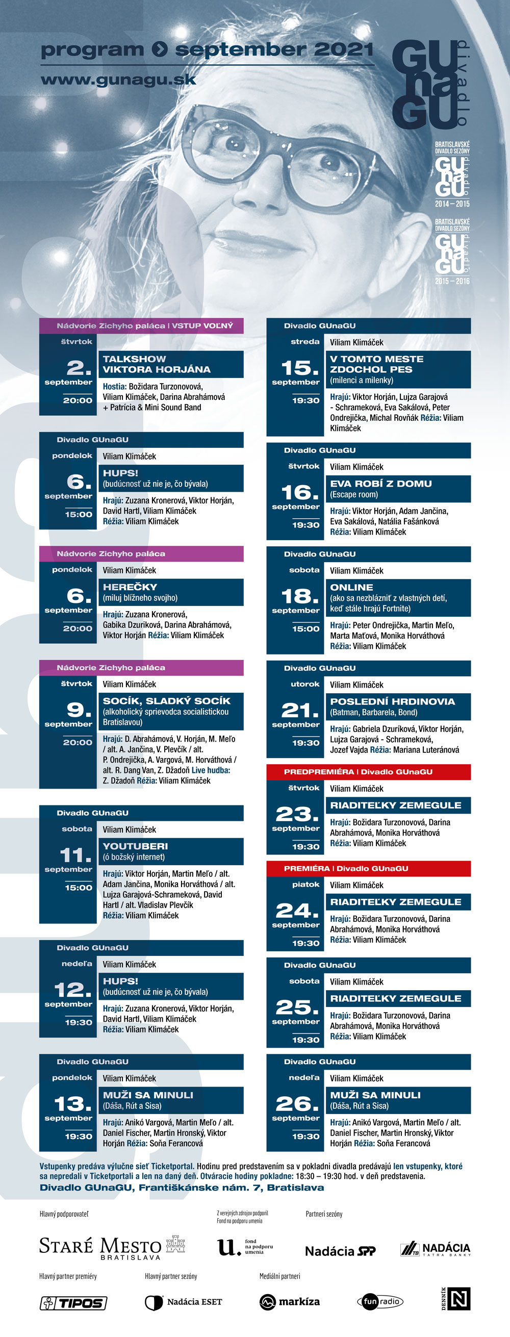 Reprízy inscenácií Divadla GUnaGU v sezóne 2020 - 2021