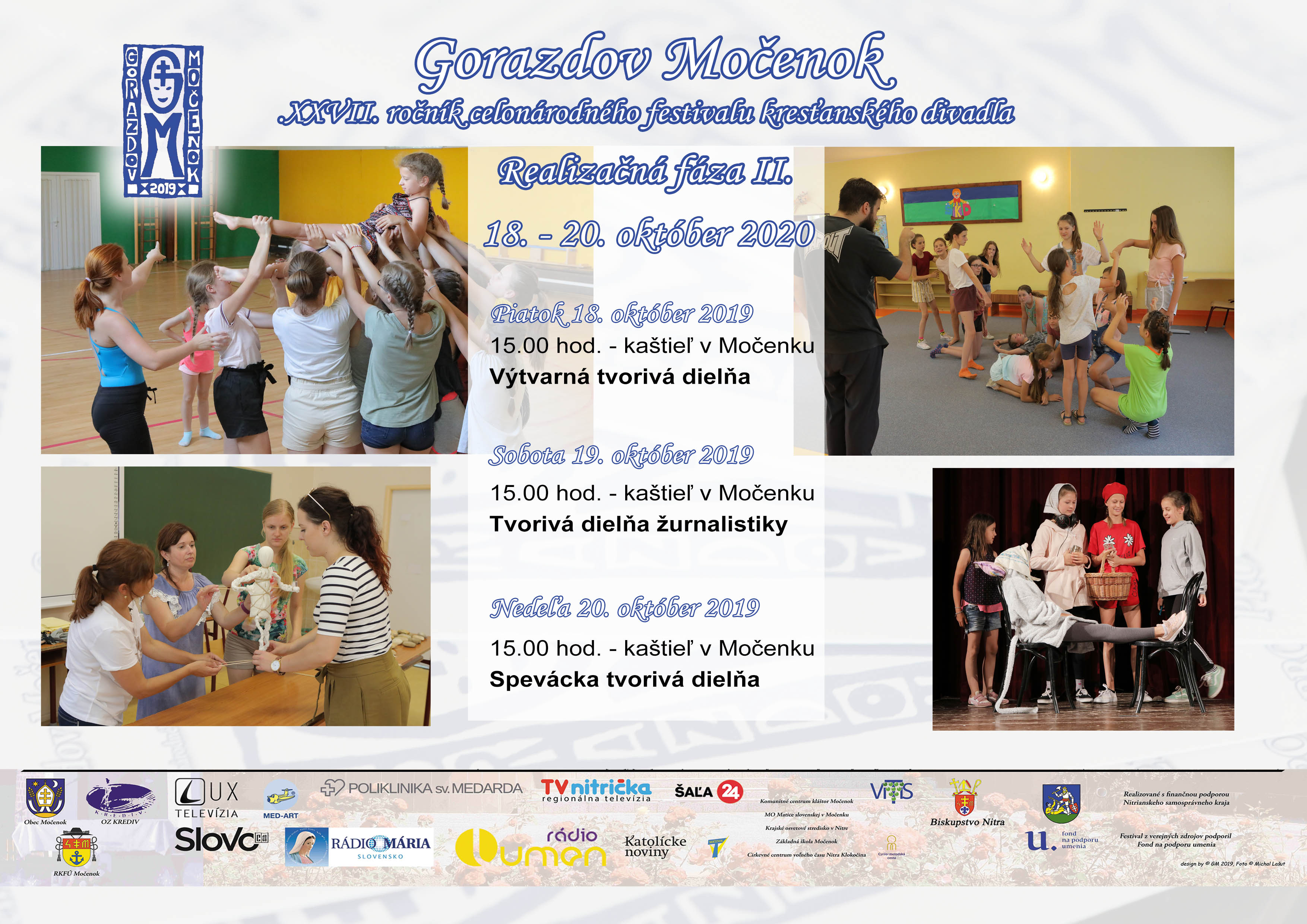 V dňoch 18. - 20. októbra sa uskutoční realizačná fáza II. celonárodného festivalu kresťanského divadla Gorazdov Močenok. Výtvarná, žurnalistická a spevácka trieda.