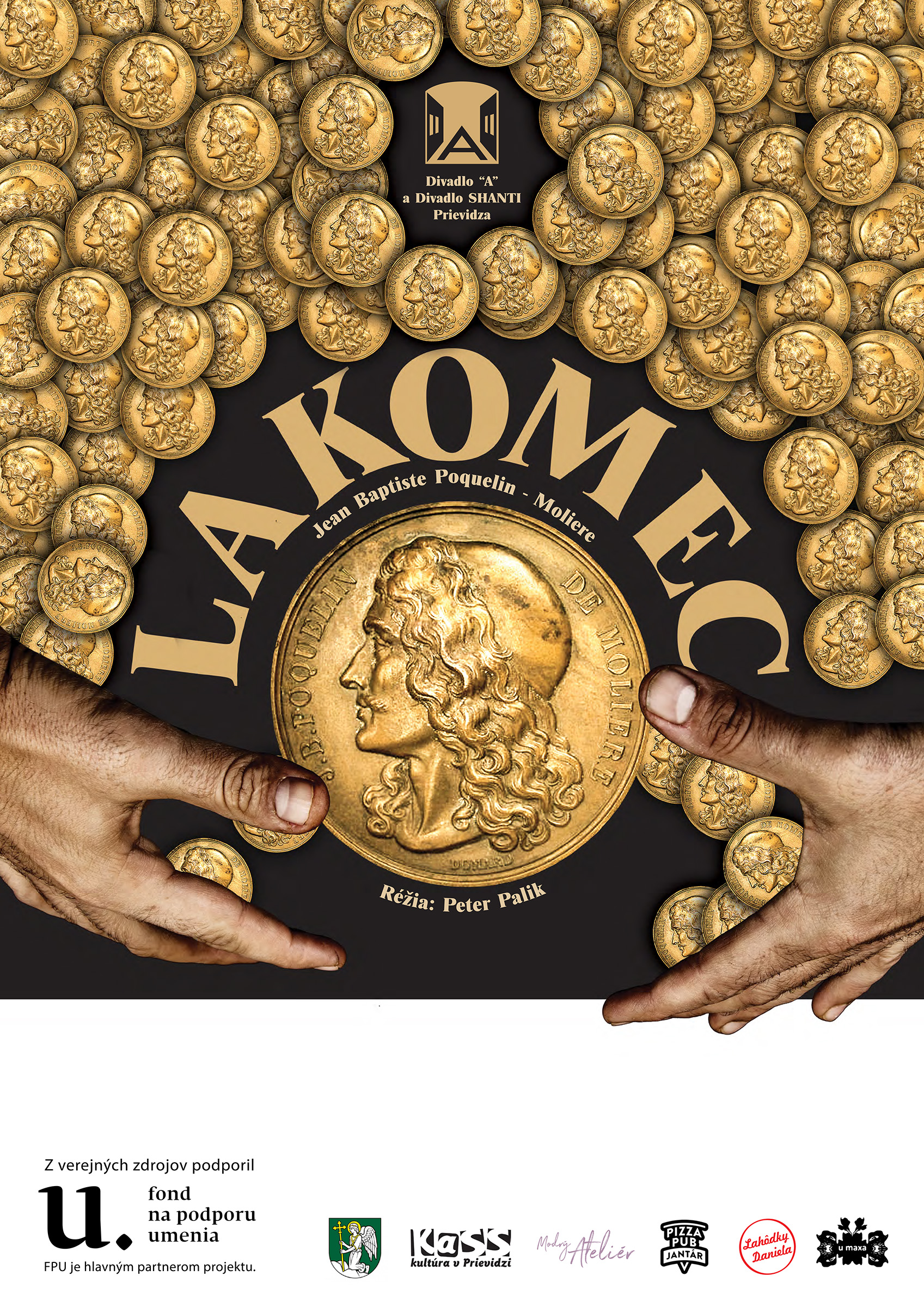 Premiéra divadelnej inscenácie LAKOMEC podľa divadelnej hry J.B.P. Moliera, v úprave a réžii Petra Palika, naštudovaná hercami Divadla A a Divadla Shanti Prievidza.