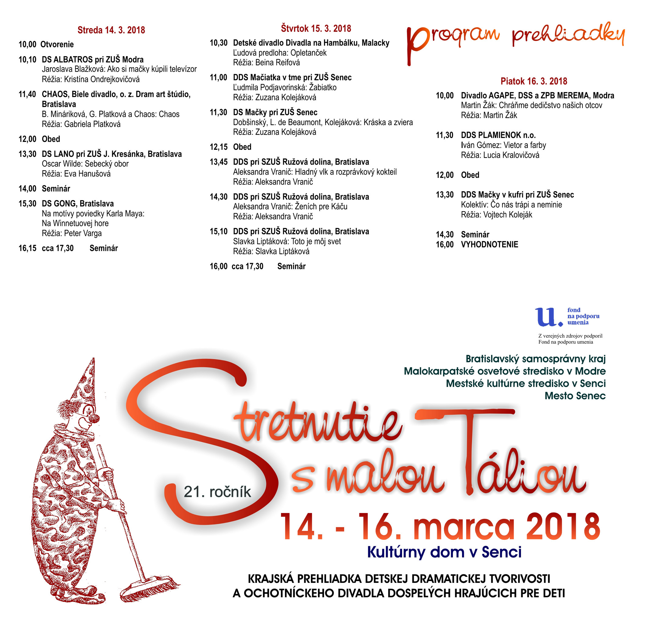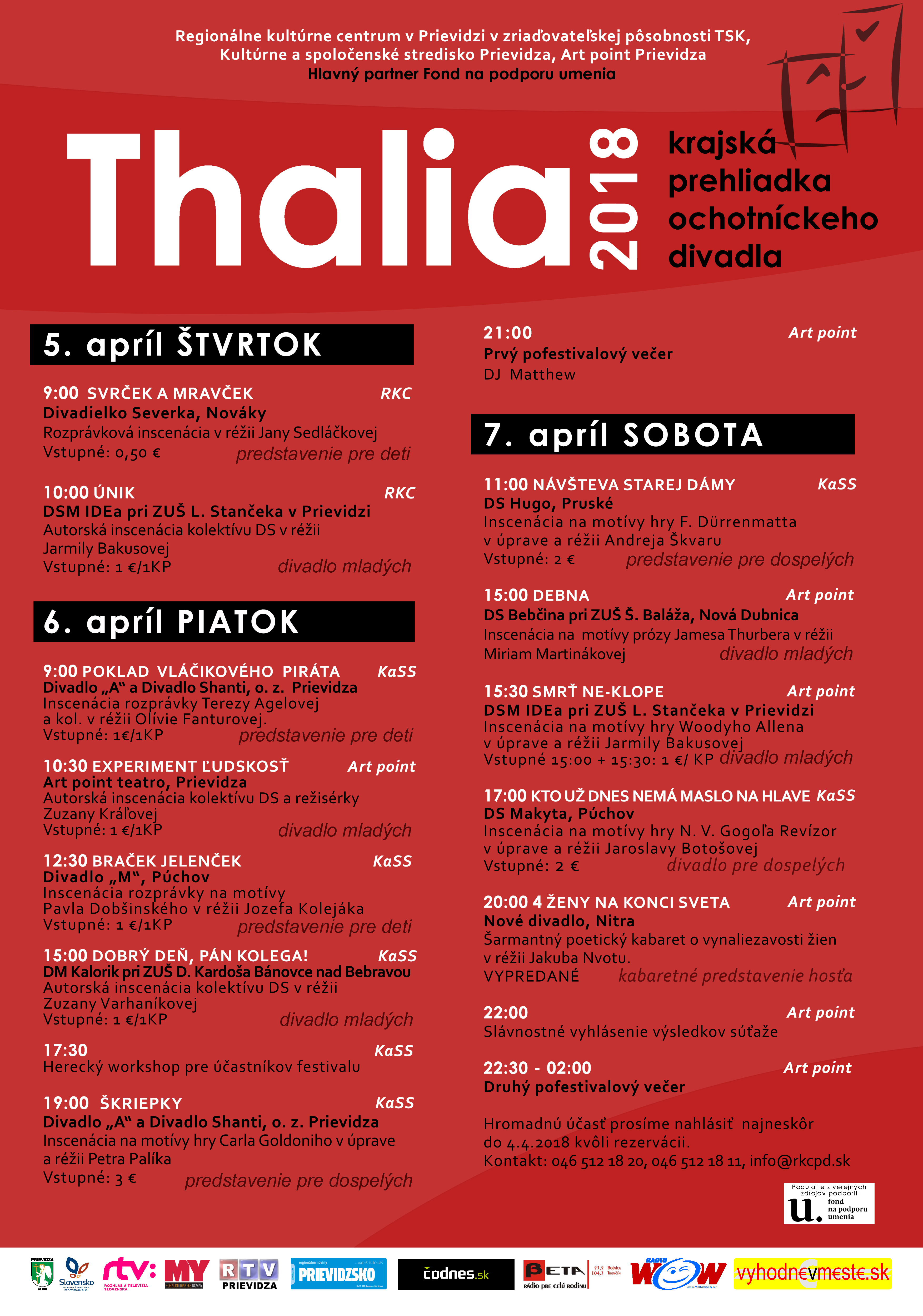 Krajská súťaž a prehliadka ochotníckeho divadla Trenčianskeho kraja v kategóriách dospelí deťom, divadla mladých a neprofesionálneho divadla dospelých.