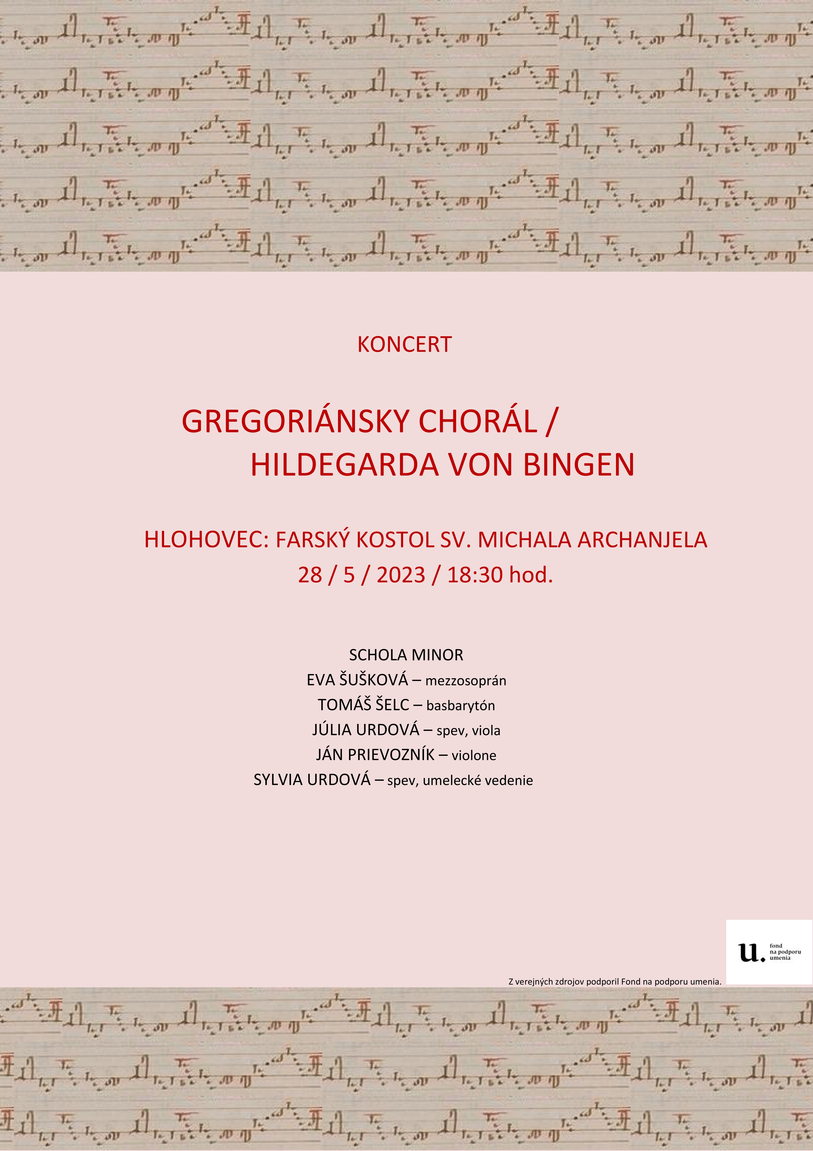 koncert s repertoárom stredovekej hudby: kompozícií gregoriánskeho chorálu a skladateľky Hildegardy z Bingenu (1098-1179)