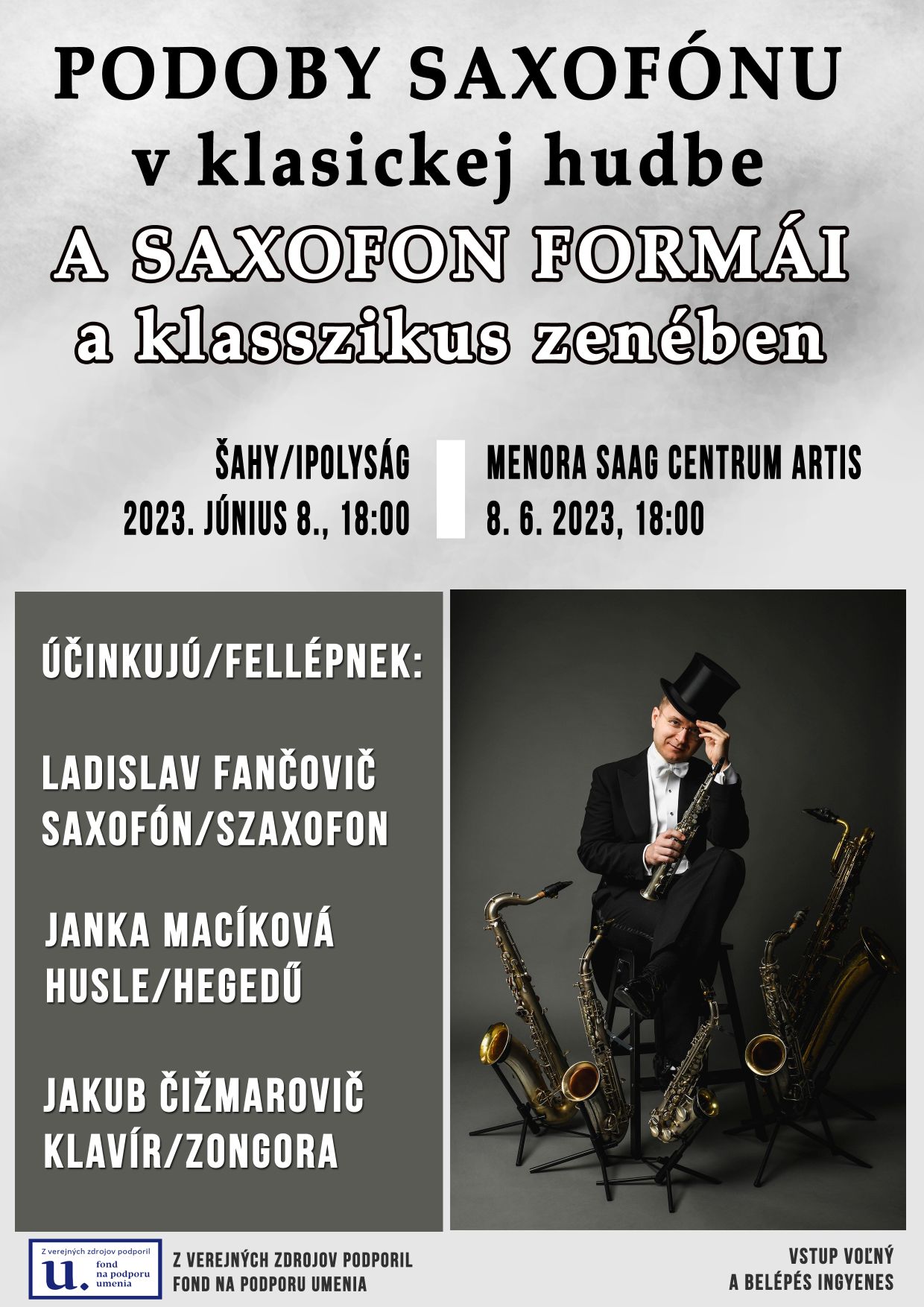 Koncert venovaný saxofónu ako nástroju klasickej hudby i raného jazzu ako sprievod k nemému filmu.