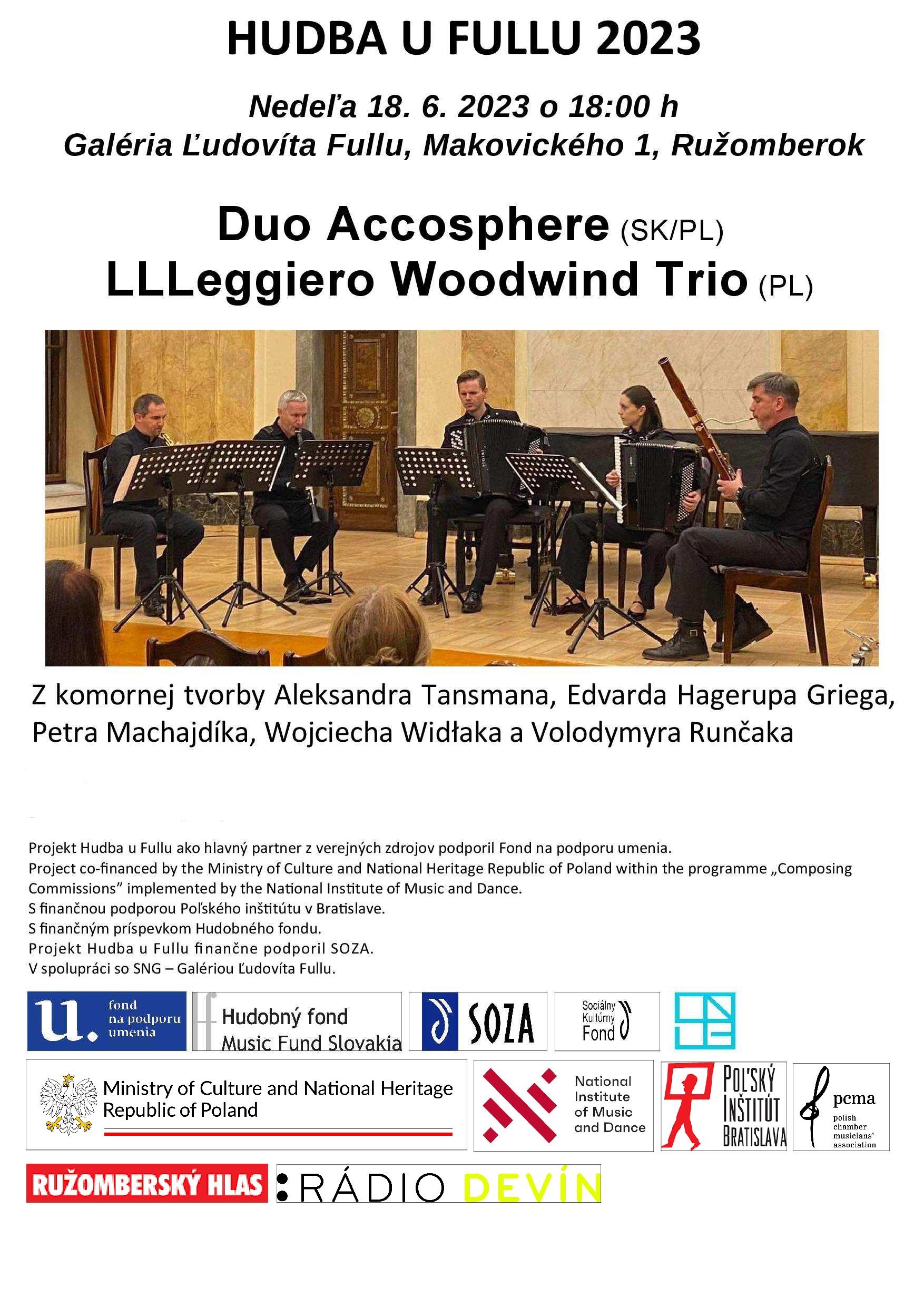 Cyklus Hudba u Fullu bude pokračovať ďalším zo série koncertov. Účinkovať budú poľsko - slovenské duoAccosphere a LLLeggiero Woodwind Trio z Krakova.