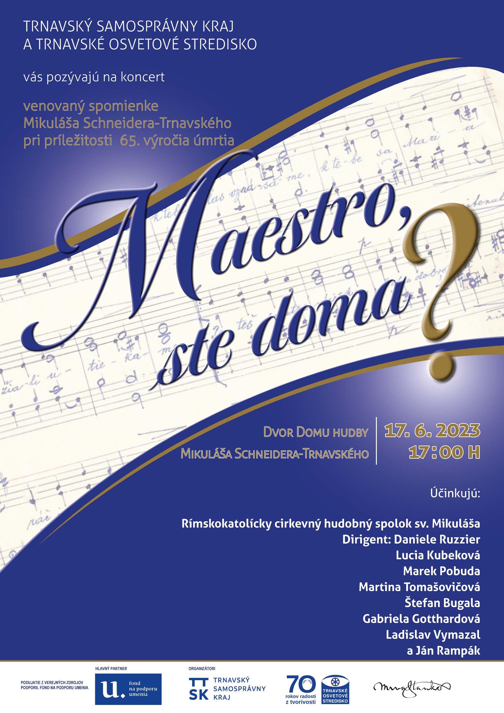 Koncert venovaný spomienke hudobného skladateľa Mikuláša Schneidera Trnavského, pri príležitosti 65. výročia úmrtia skladateľa.