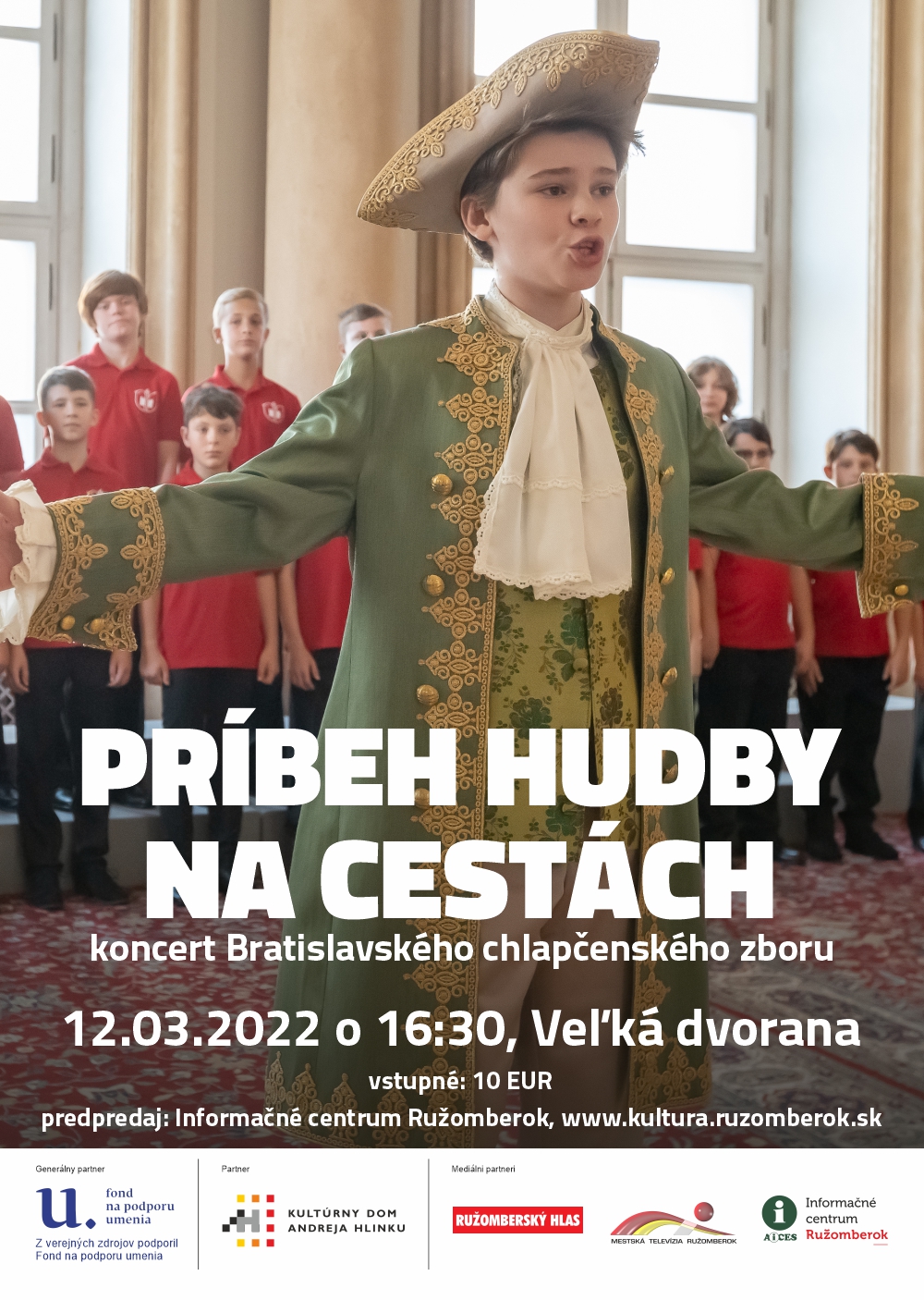 Dobrých nápadov je veľa. Tým najlepším je stať sa súčasťou speváckeho zboru a užívať si radosť z hudby, priateľstva, ale aj ochutnať úspech a spoznať svet! Koncert Bratislavského chlapčenského zboru s názvom "Príbeh hudby na cestách" je tu pre celú rodinu. Počas koncertu zaznejú najkrajšie piesne z repertoáru zboru, ktoré bude doprevádzať hovoreným slovom autor projektu a dirigent Gabriel Rovňák ml.
