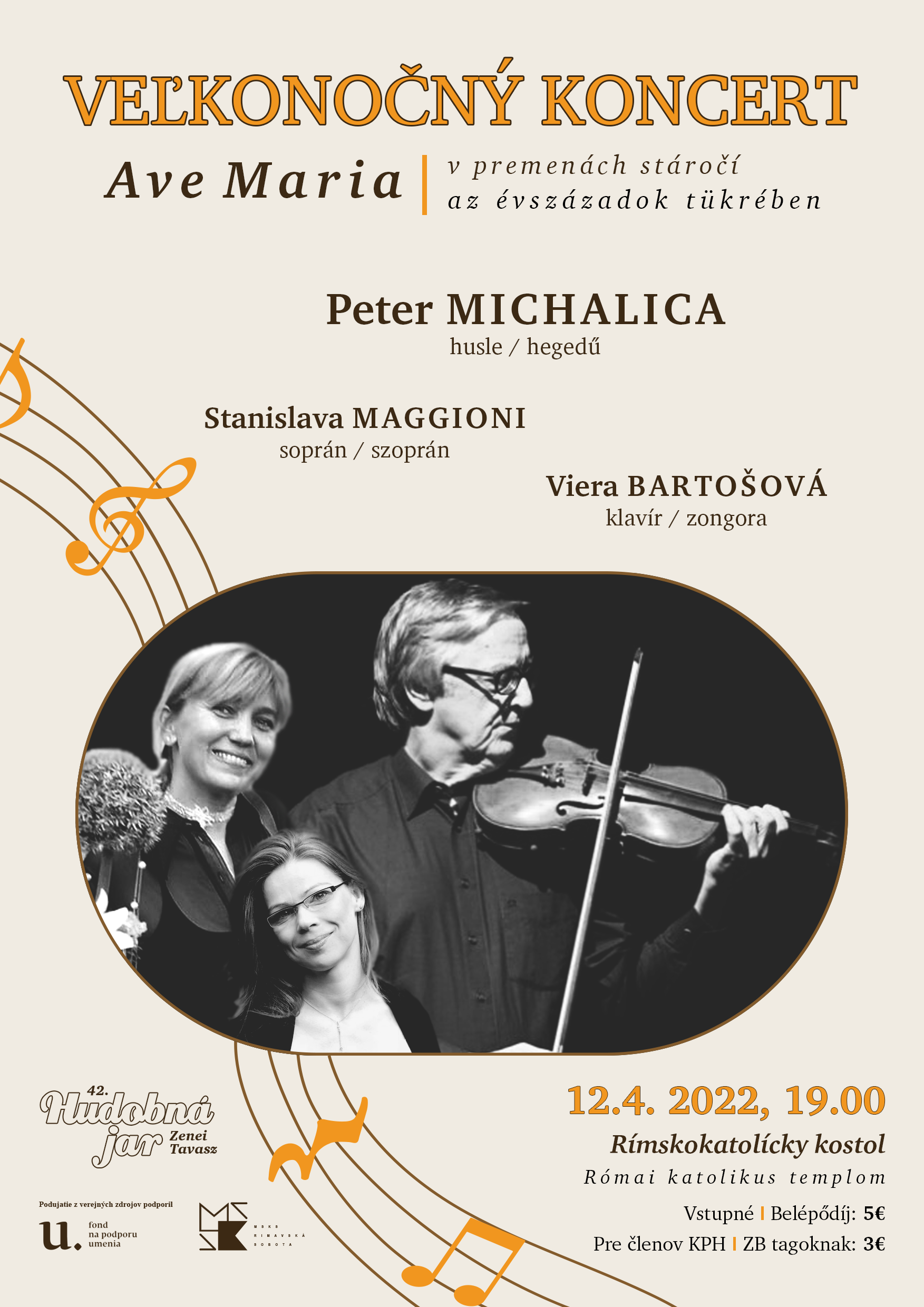 Cieľom projektu je udržať kontinuity koncertného života, prezentácia pôvodnej a svetovej hudobnej tvorby a umeleckých výsledkov dosiahnutých v oblasti profesionálneho hudobného umenia. Prvým koncertom Hudobnej jari bude Veľkonočný koncert. Účinkujú: Peter Michalica (husle), Stanislava Maggioni (sporán) a Viera Bartošová (klavír). Koncert sa uskutoční v rímskokatolíckom kostole sv.Jána Krstiteľa 12.apríla 2022 o 19.00 hod.