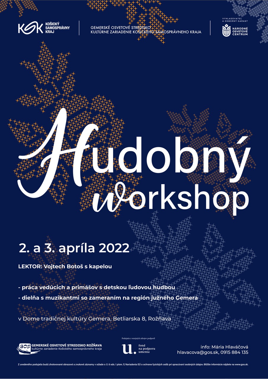 Hudobný workshop - práca vedúcich a primášov s detskou ľudovou hudbou, muzikantská dielňa so zameraním na južný Gemer.