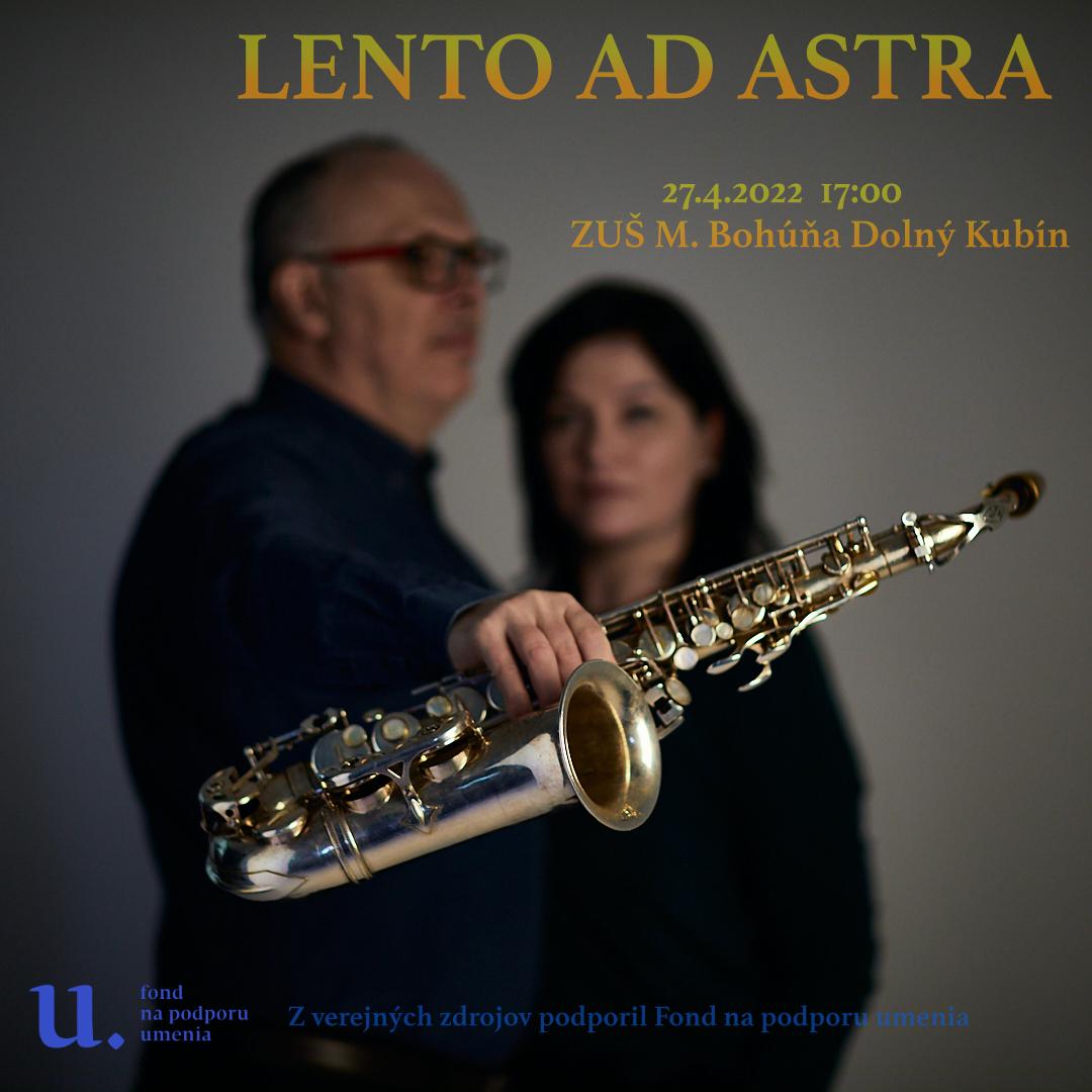 koncert skupiny Lento Ad Astra - streda 27.4.2022 17h00, ZUŠ M- Bohúňa, Dolný Kubín skupina predstavý svoj nový repertoár z čerstvo nahraného albumu MADE in SK Z verejných zdrojov podporil Fond na podporu umenia