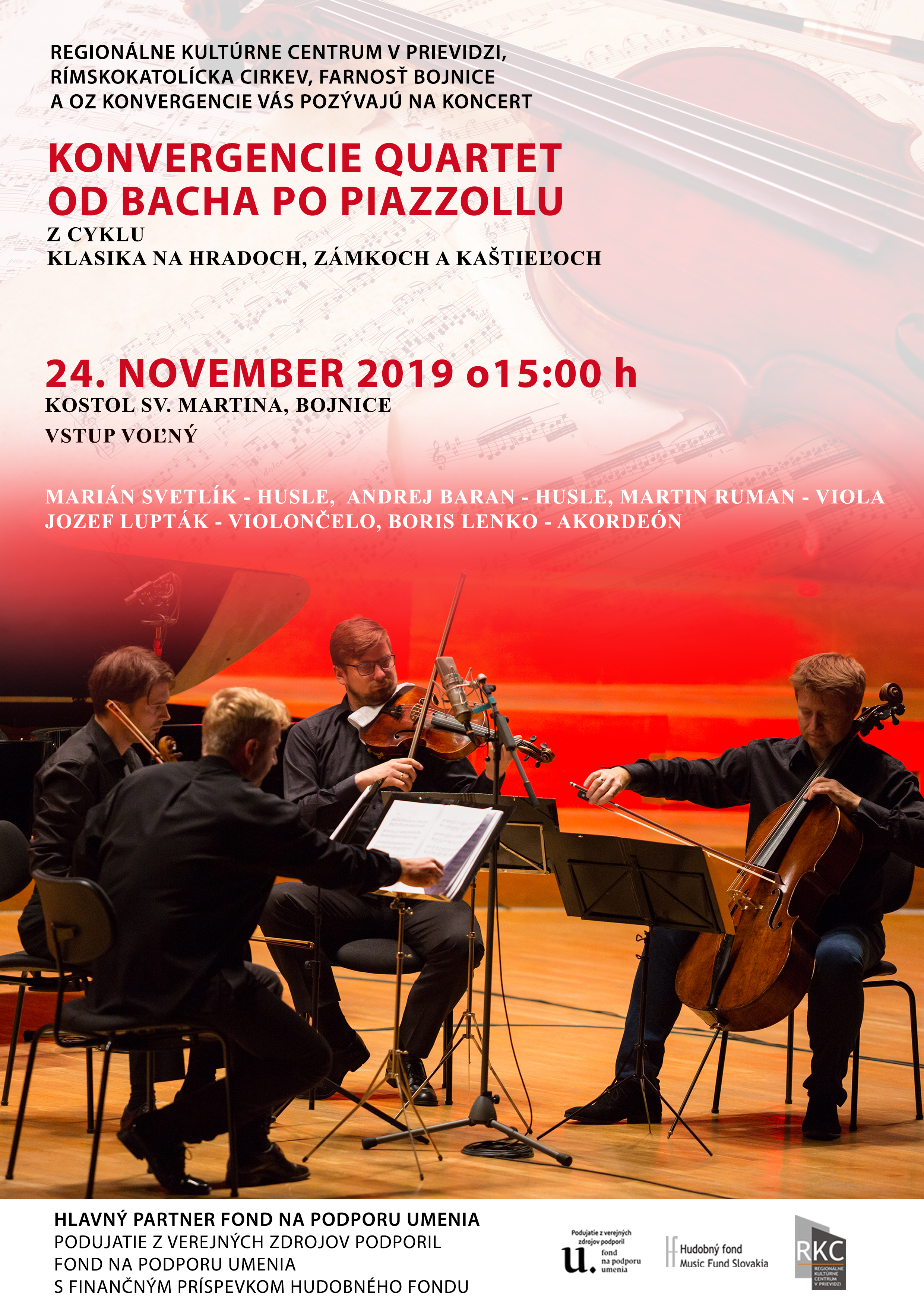 Koncert špičkového telesa v oblasti vážnej hudby, ktorého členovia sú hráčmi popredných slovenských orchestrov sa uskutoční dňa 24. novembra 2019 o 15:00h v Kostole sv. Martina v Bojniciych v rámci koncertného cyklu Klasika na zámkoch, hradoch a kaštieľoch.