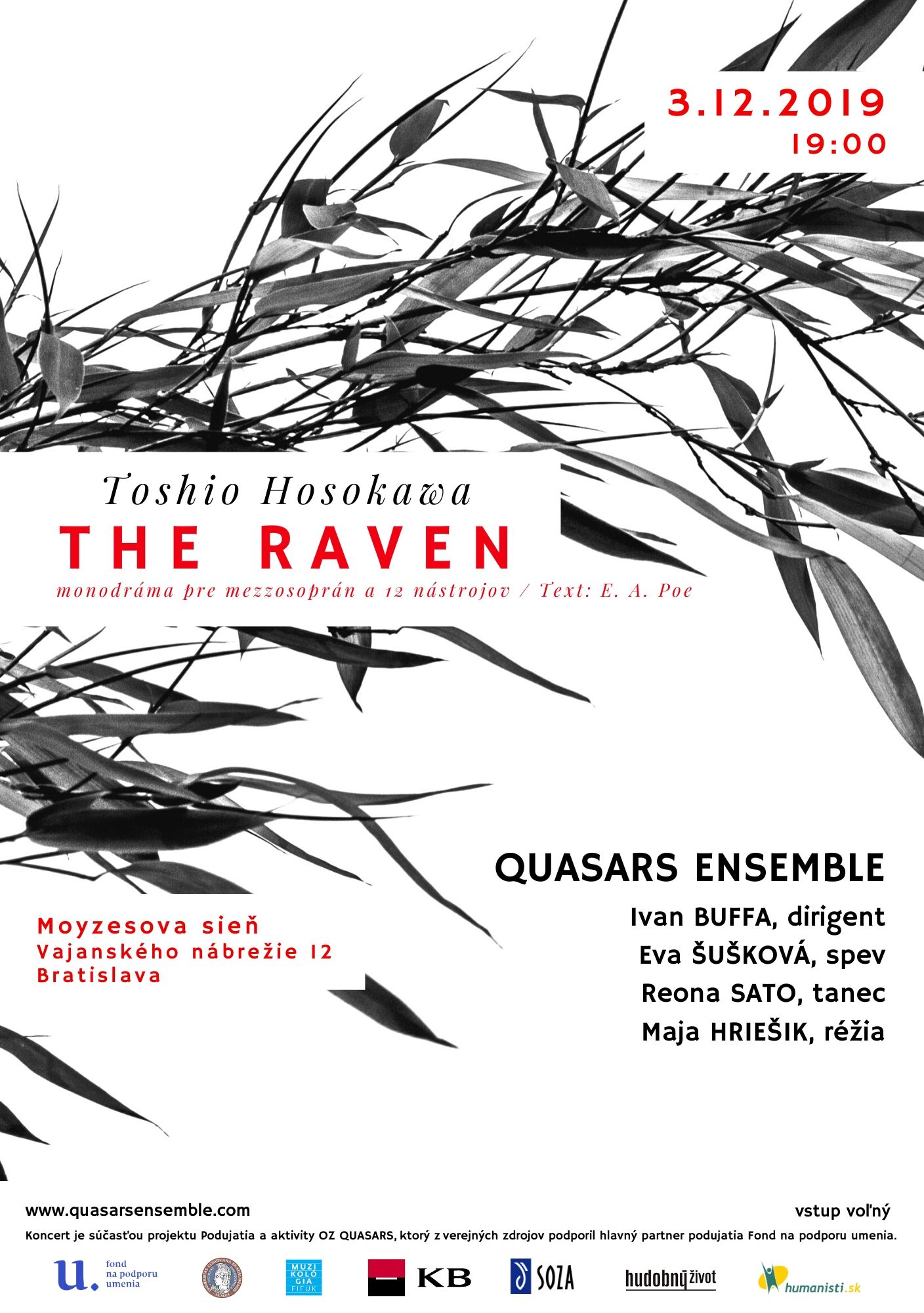 Medzi kľúčové podujatia projektu patrí podujatie “MonoDráma” The Raven – scénické stvárnenie slávnej monodrámy japonského skladateľa Toshia Hosokawu z roku 2012 na text básne E. A. Poea. Interpretmi koncertu sú – Quasars Ensemble pod taktovkou Ivana Buffu s poprednou slovenskou sólistkou Evou Šuškovou, japonskou tanečníčkou Reonou Sato a v režijnom naštudovaní režisérky Maji Hriešik¬.