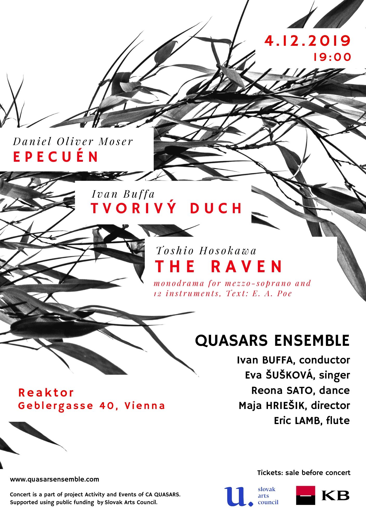 Medzi kľúčové podujatia projektu patrí podujatie “MonoDráma” The Raven – scénické stvárnenie slávnej monodrámy japonského skladateľa T. Hosokawu z roku 2012 na text básne E. A. Poea. Interpretmi koncertu sú – Quasars Ensemble pod taktovkou I. Buffu s poprednou slovenskou sólistkou E. Šuškovou, japonskou tanečníčkou R. Sato a v režijnom naštudovaní režisérky M. Hriešik¬. Na koncerte ešte zazneje skladba slovenského skladateľa I. Buffu – Tvorivý duch a rakúskeho skladateľa D. O. Mosera – Epecuén.