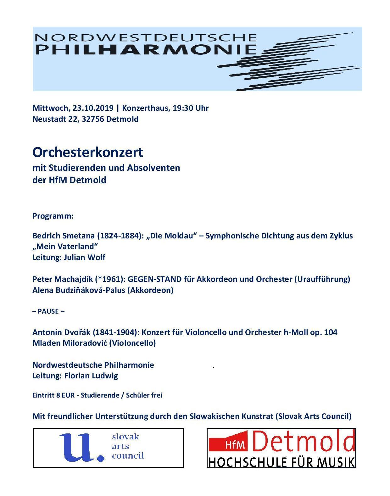 Svetová premiéra skladby Petra Machajdíka GEGEN-STAND pre akordeón a orchester Alena-Budziňáková Palus (akordeón) Nordwestdeutsche Philharmonie Dirigent Florian Ludwig