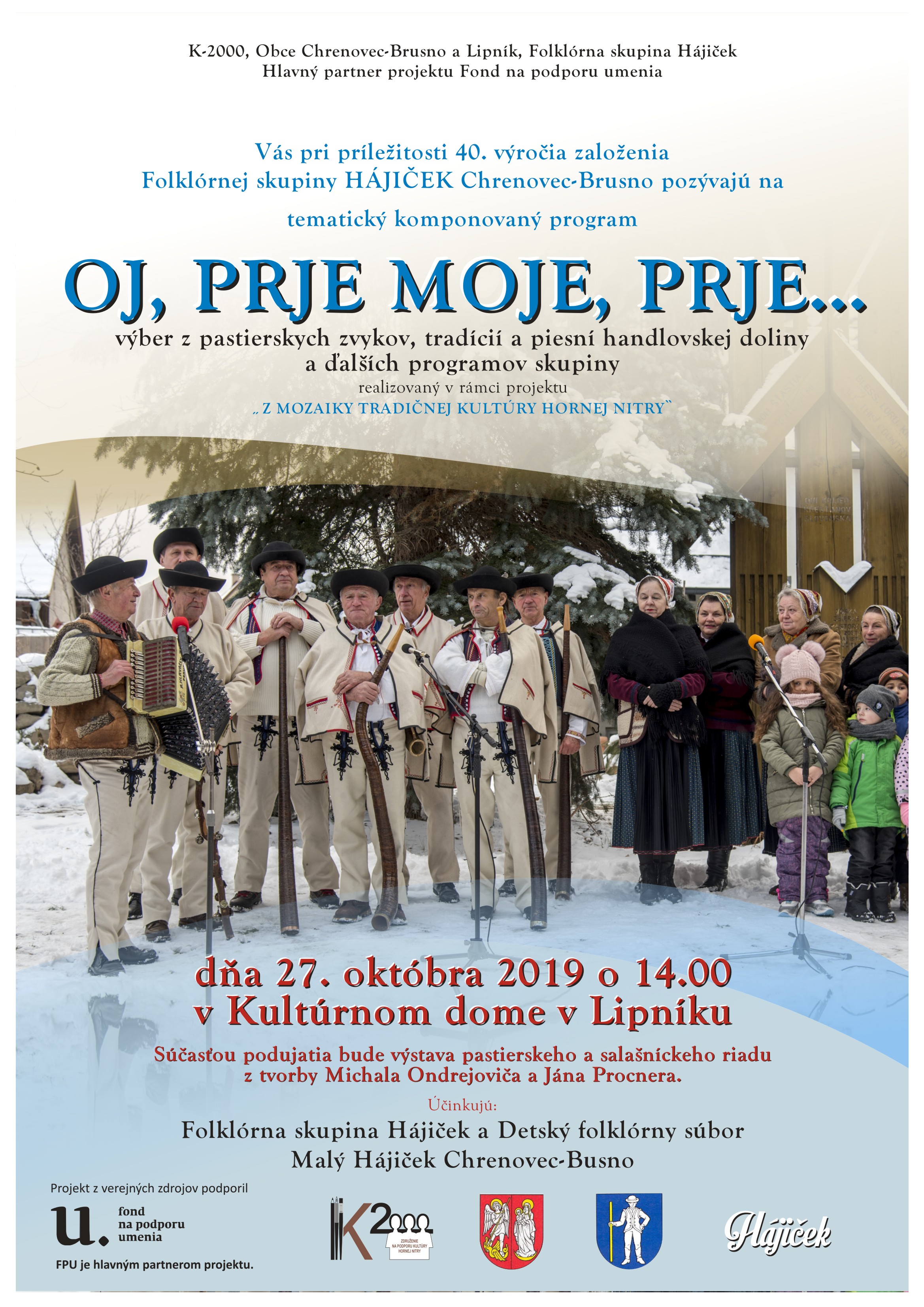 Príprava a realizácia programov a aktivít mapujúcich osobitné fenomény tradičnej kultúry vybraných lokalít regiónu hornej Nitry. Občianske združenie K-2000, združenie na podporu kultúry hornej Nitry ich realizuje v spolupráci s miestnymi nostiteľmi tradičnej kultúry.
