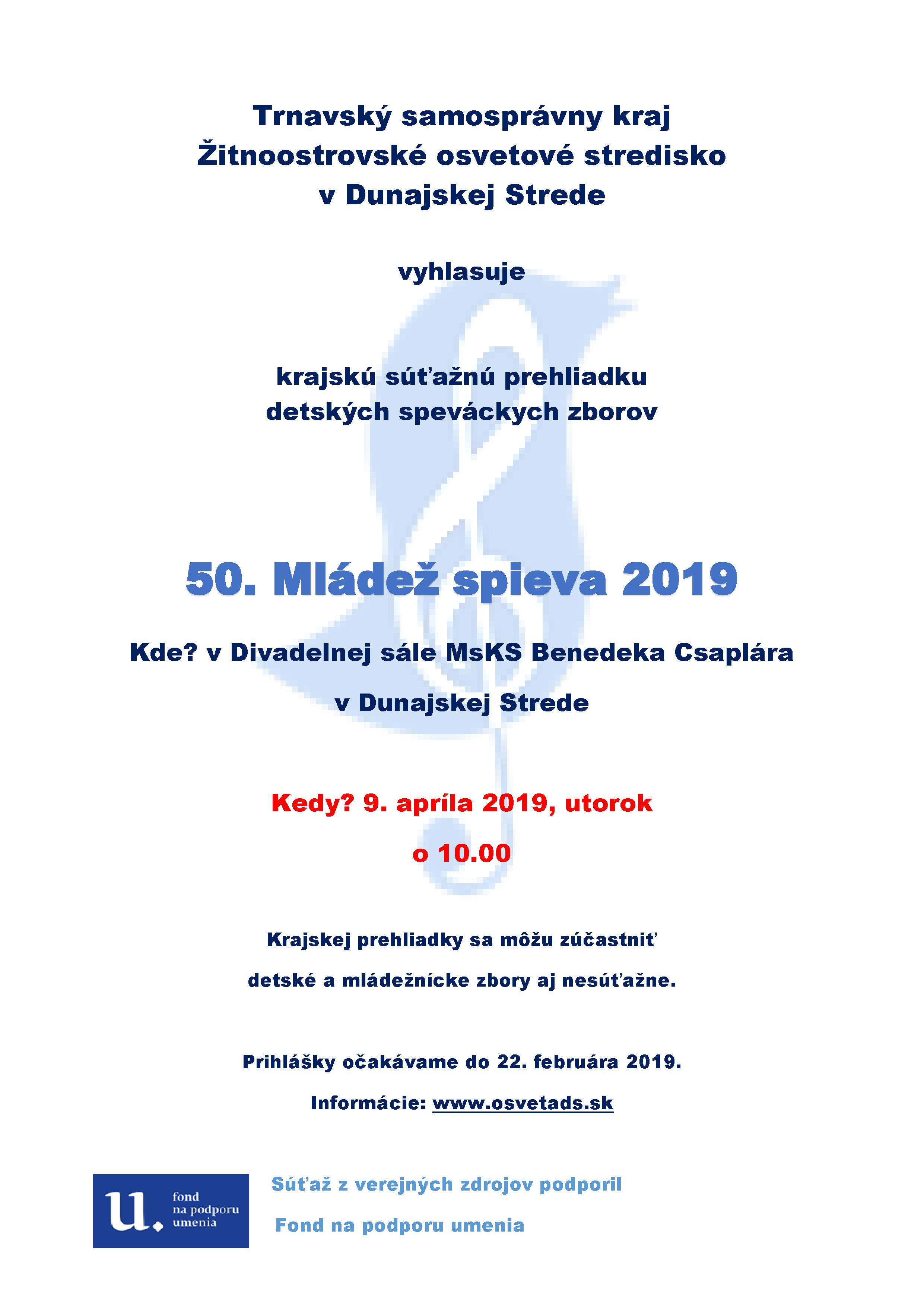 Mládež spieva 2019 - 50. jubilejný ročník krajskej postupovej súťaže a prehliadky detských speváckych zborov