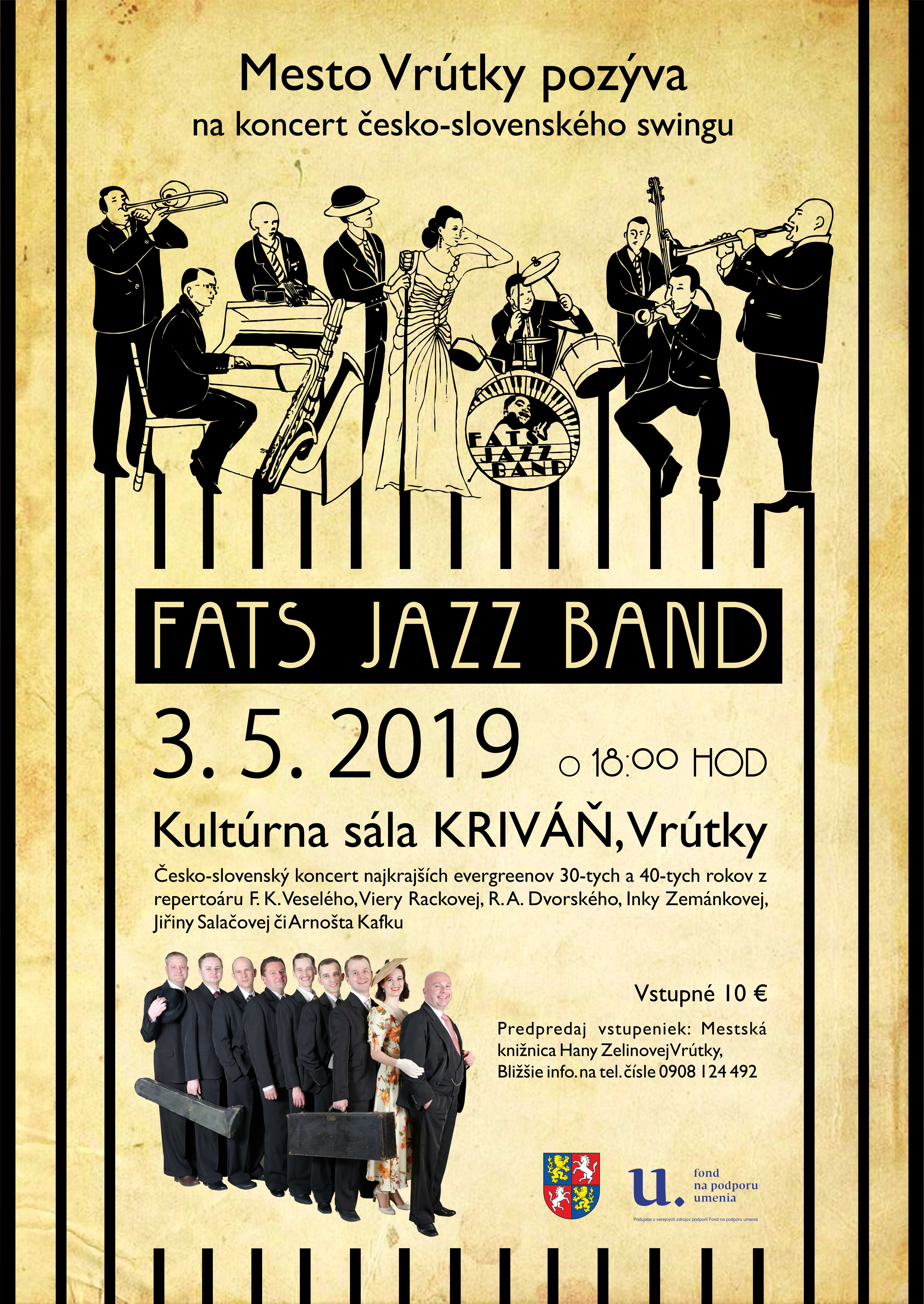 Hot Jazzová a swingová hudba 20-tych až 40-tych rokov minulého storočia v podaní orchestra Fats Jazz Band.