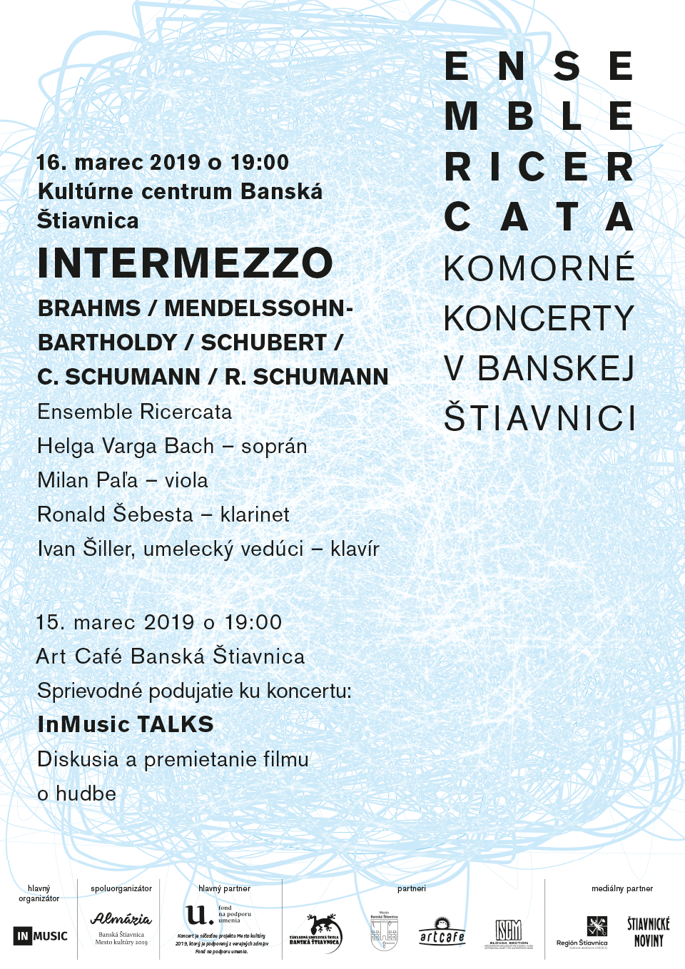 Pozývame Vás na tretí z cyklu Komorných koncertov v Banskej Štiavnici s názvom Intermezzo, ktorý sa uskutoční 16. marca 2019 v Kultúrnom centre v Banskej Štiavnici.