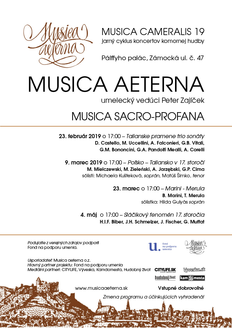 Druhý koncert jarného komorného cyklu súboru starej hudby MUSICA AETERNA s odborným výkladom Mgr. Petra Zajíčka, ArtD., venovaný 100. výročiu narodenia zakladateľa súboru prof. Jána Albrechta.