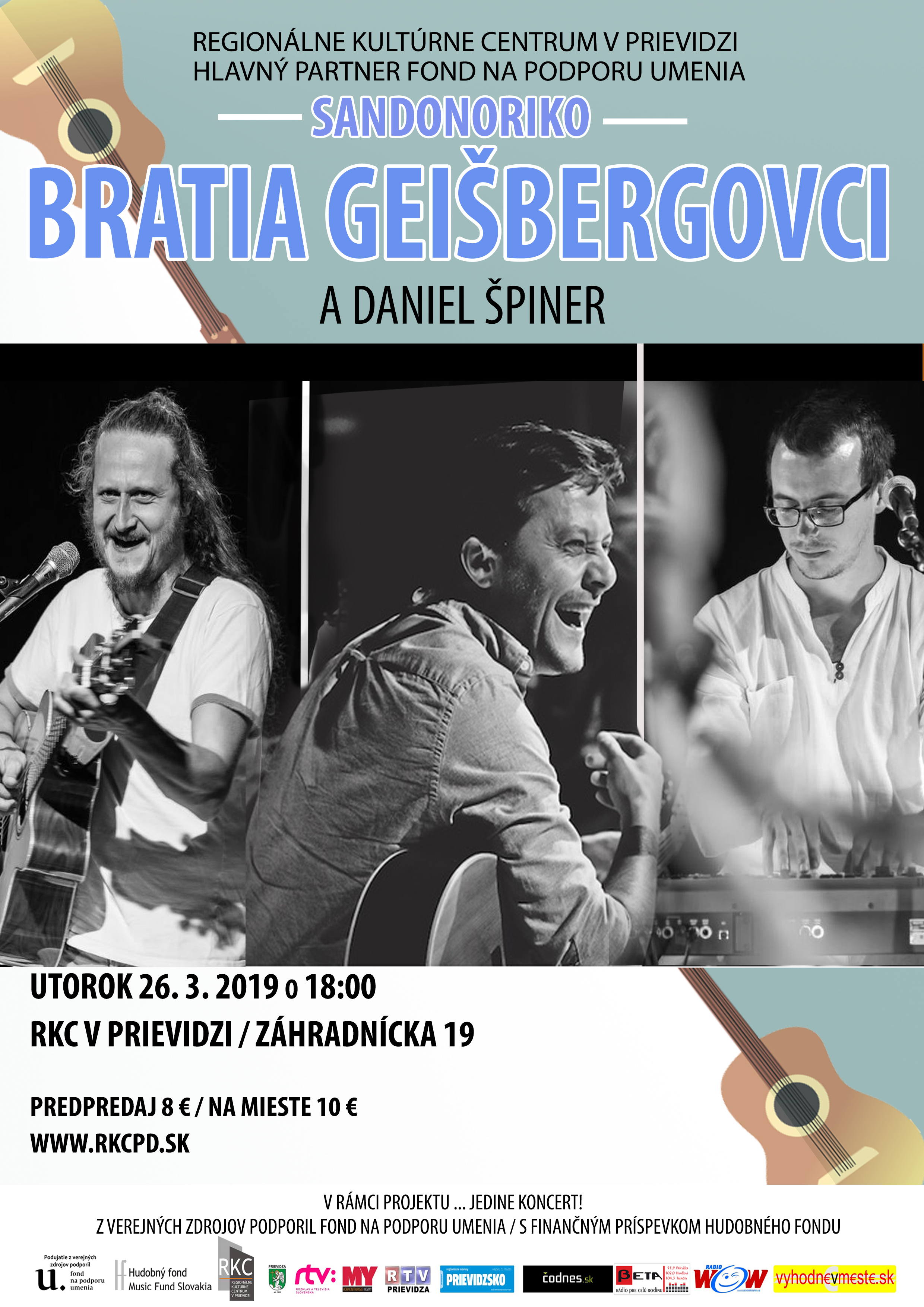 SANDONORIKO - Koncert bratov Geišbergovcov a Daniela Špinera v Regionálnom kultúrnom centre v Prievidzi.