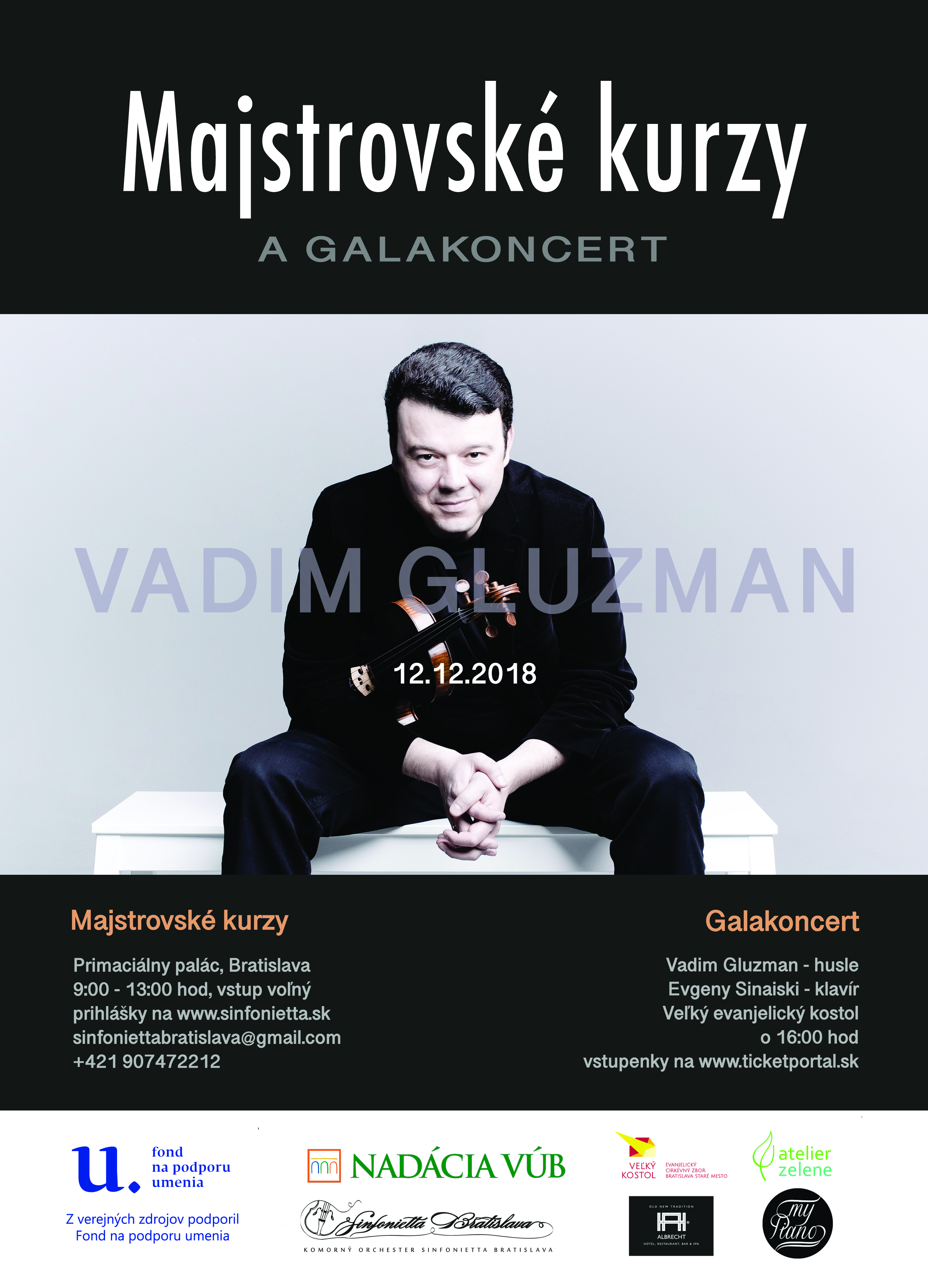 Majstrovské kurzy a Galakoncert svetových virtuózov – Vadim Gluzman Vadim Gluzman je izraelský huslista s ukrajinskými koreňmi, častokrát je prirovnávaný k legendárnemu Davidovi Oistrachovi. Má za sebou spoluprácu s najvýznamnejšími orchestrami na svete. Vadim Gluzman hrá na výnimočnom nástroji z dielne A. Stradivari „ex-Leopold Auer“ z roku 1690.