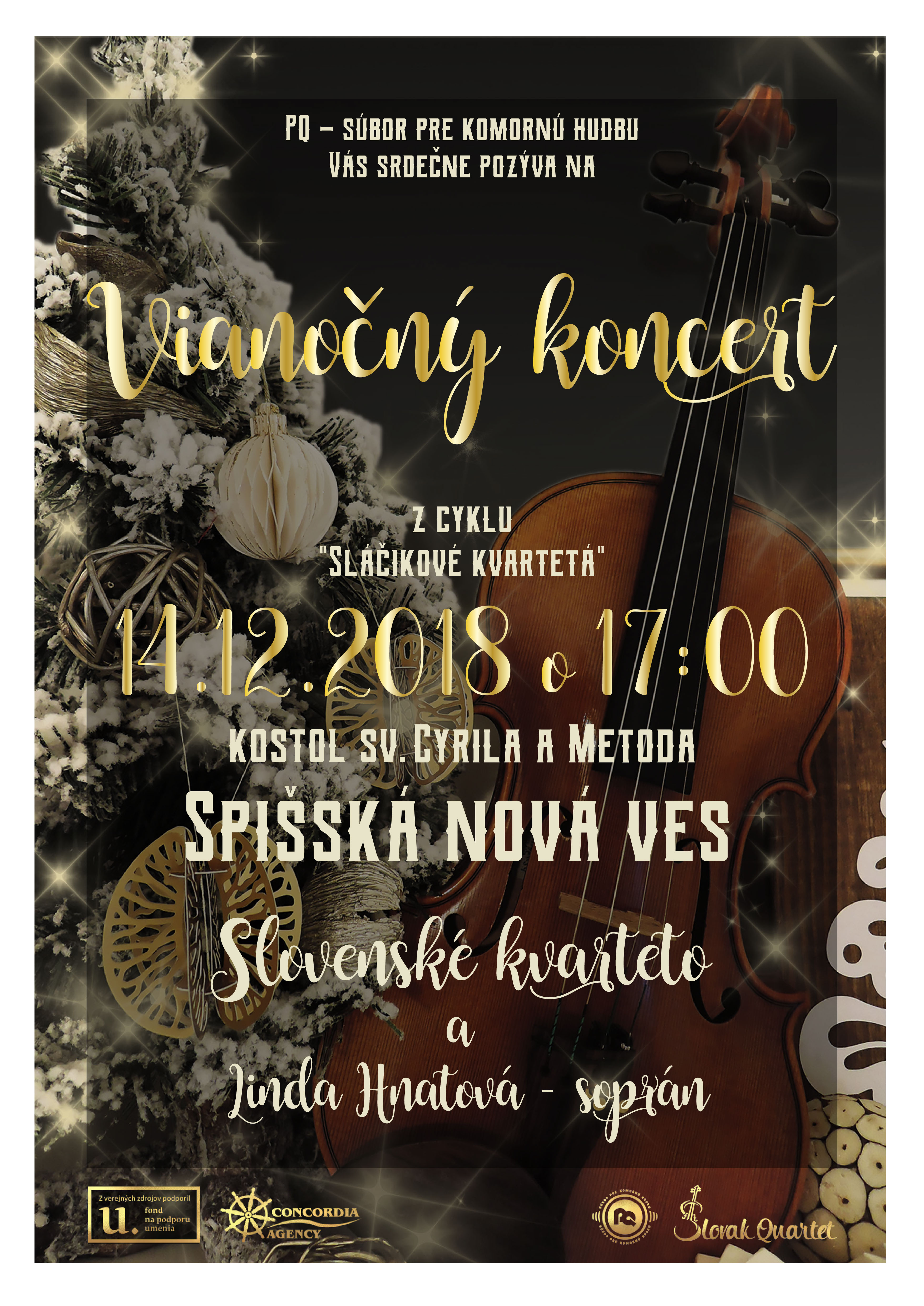 Vianočný koncert Slovenského kvarteta, 14.12.2018 o 17:00 hod., Kostol sv. Cyrila a Metoda.