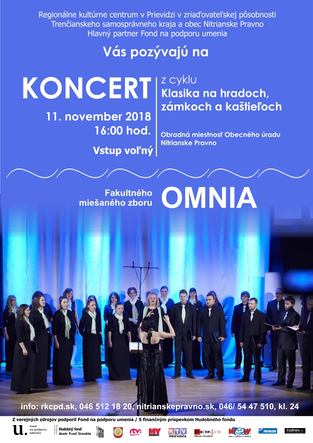 Koncert Fakultného miešaného zboru Omnia zo Žiliny pod vedením dirigentky Moniky Bažíkovej sa uskutoční v nedeľu 11. novembra o 16:00 h v obradnej miestnosti historickej budovy Obecného úradu v Nitrianskom Pravne.