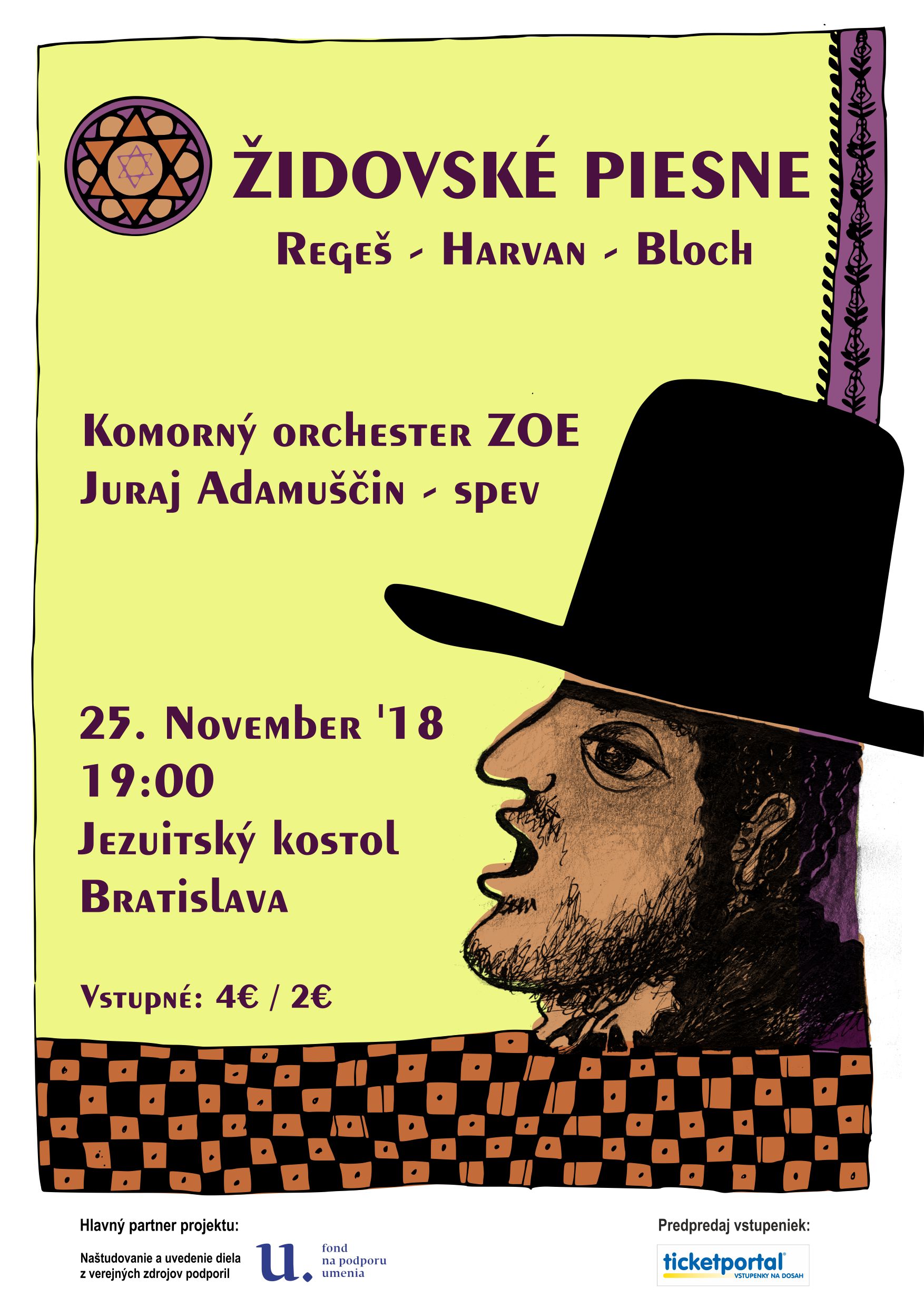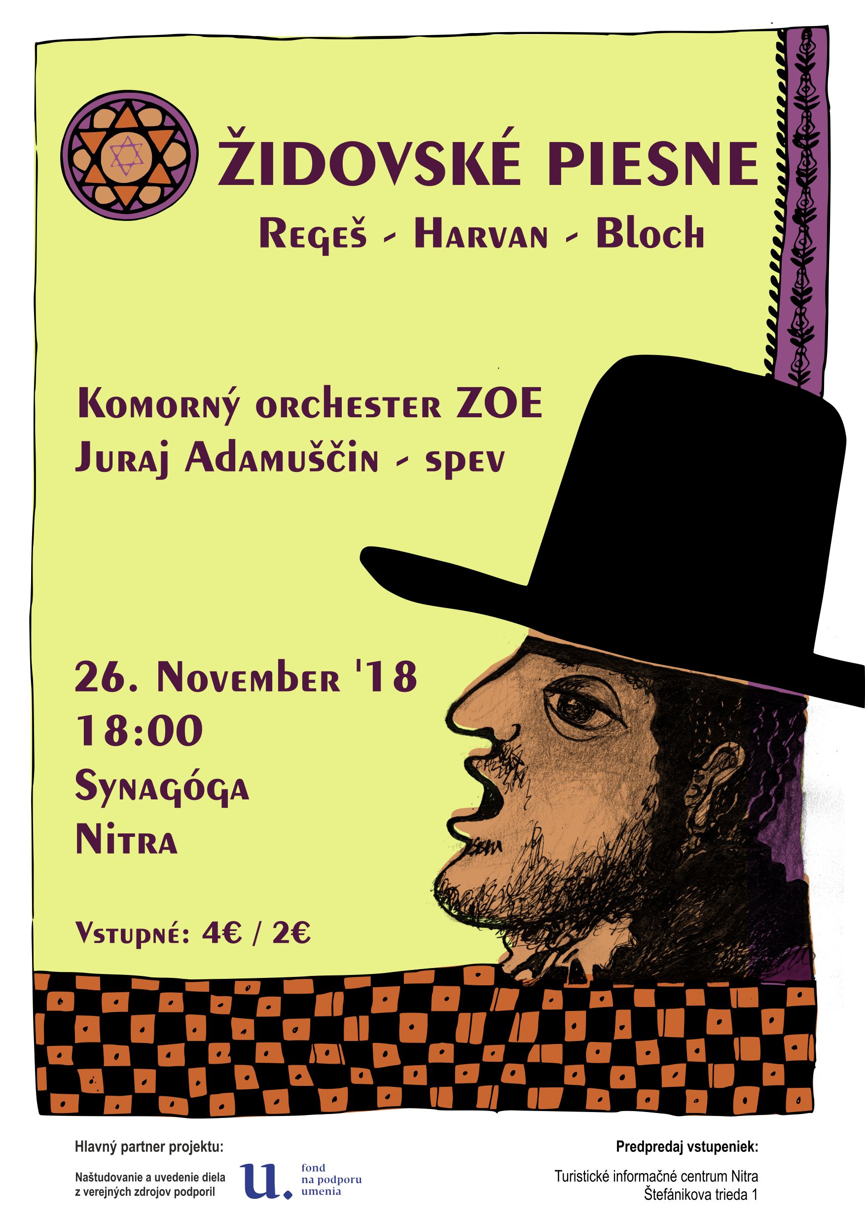 Židovské piesne v úprave pre spev a sláčikový orchester z pera mladých slovenských skladateľov G. Regeša a A. Harvana, popretkávané inštrumentálnymi skladbami E. Blocha. Komorný orchester ZOE Juraj Adamuščin - spev