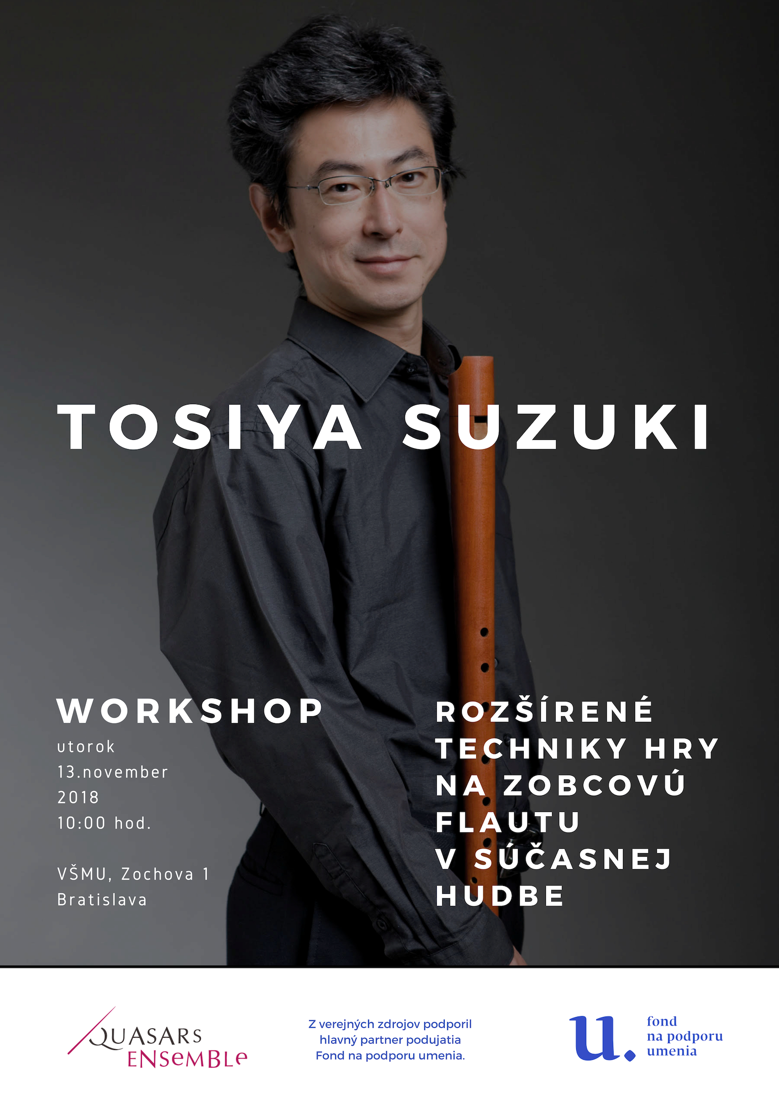 Workshop a individuálna konzultácia pre študentov skladby a interpretov s Tosiyom Suzukim, japonským hráčom na zobcové flauty o rozširených technikách hry na zobcovú flautu v súčasnej hudbe