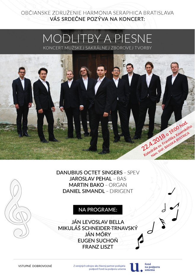 Koncert mužskej sakrálnej zborovej tvorby z diela Jána Levoslava Bellu, Mikuláša Schneidra-Trnavského, Jána Móryho, Eugena Suchoňa a Franza Liszta v katedrále sv. Františka Xaverského na Nám. SNP v Banskej Bystrici v podaní mužského speváckeho okteta Danubius Octet Singers, sólistu Jaroslava Pehala (bas), organistu Martina Baka a dirigenta Daniela Simandla.