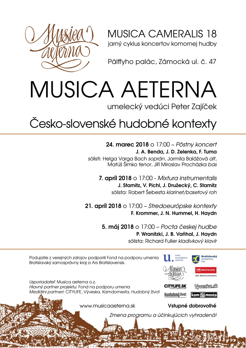 Zámerom je nepriamo nadviazať na slávny cyklus koncertov Concert Spirituel. Ambíciou 12. ročníka cyklu komorných koncertov je oživiť spomienky na muzicírovanie a podporiť pestovanie komornej hudby v Bratislave. Každý koncert uvádza odborný výklad. Téma roku 2018: Česko-slovenské hudobné kontexty Cieľom je zvýraznenie originality česko-slovenskej historickej umeleckej tvorby a jej jedinečnosti a prezentácia netradičnej komornej hudby na dobových nástrojoch či cezhraničná spolupráca SK – AT.