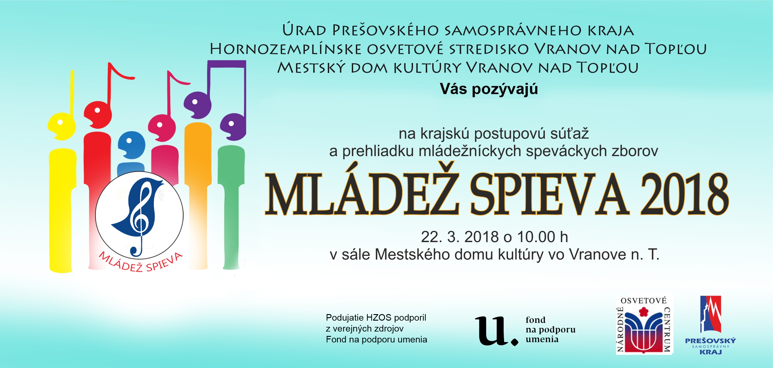 Mládež spieva sa vo Vranove nad Topľou koná už 15. rok, každé dva roky, vždy v párnych rokoch pre mládežnícke spevácke zbory (v nepárnych rokoch je zameraná na detské spevácke zbory). Cieľom a zámerom projektu je zdokumentovať súčasnú úroveň zborového spevu,motivovať spevácke zbory o tento náročný umelecký žáner a tiež vybrať reprezentanta kraja na celoštátnu súťaž a v konečnom dôsledku vytvárať priestor pre zmysluplné využívanie voľného času detí a mládeže.