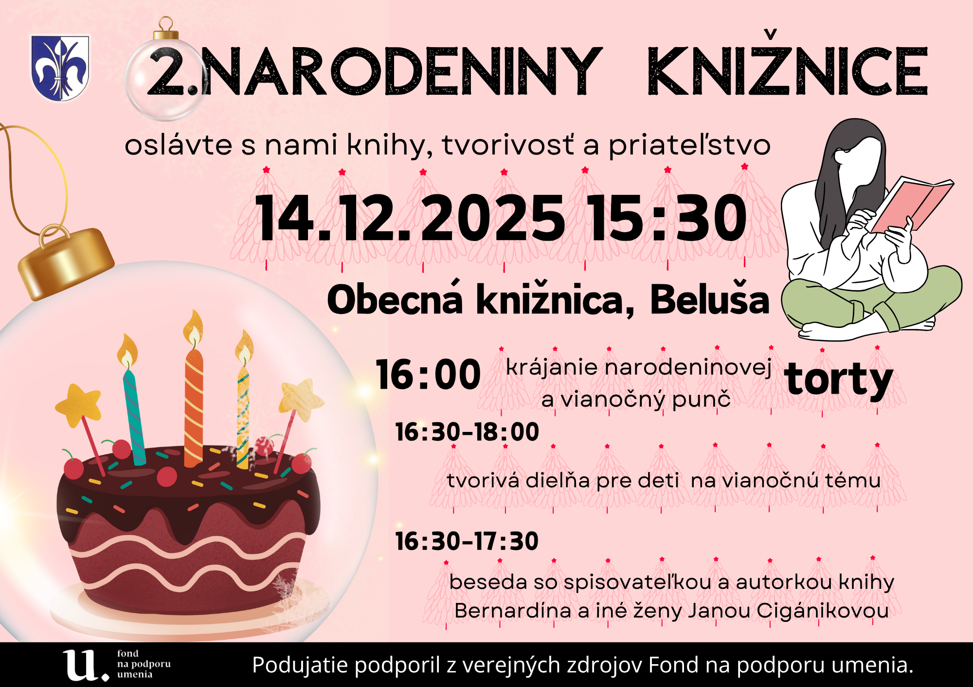 V decembri si pripomenie Obecná knižnica v Beluši svoje druhé narodeniny po rekonštrukcii s cieľom osláviť príbehy, priateľstvá a kreativitu. Na komunitnom podujatí sa okrem dielní pre deti predstaví aj spisovateľka Jana Cigániková so svojím debutom Bernardína a iné ženy.