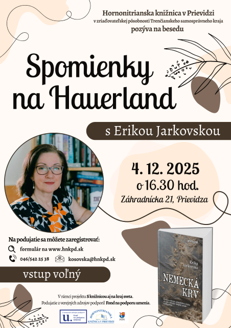 Historické romány sa tešia u nás veľkej pozornosti. Ešte viac vedia zaujať čitateľov, keď sa v nich rozpráva o konkrétnych ľuďoch, miestach či rodinách. Erika Jarkovská, autorka románu Nemecká krv, cez zaujímavý príbeh svojich predkov spracovala obdobie osídľovania Slovenska nemeckými prisťahovalcami a život nemeckej menšiny na našom území nazývanom Hauerland.