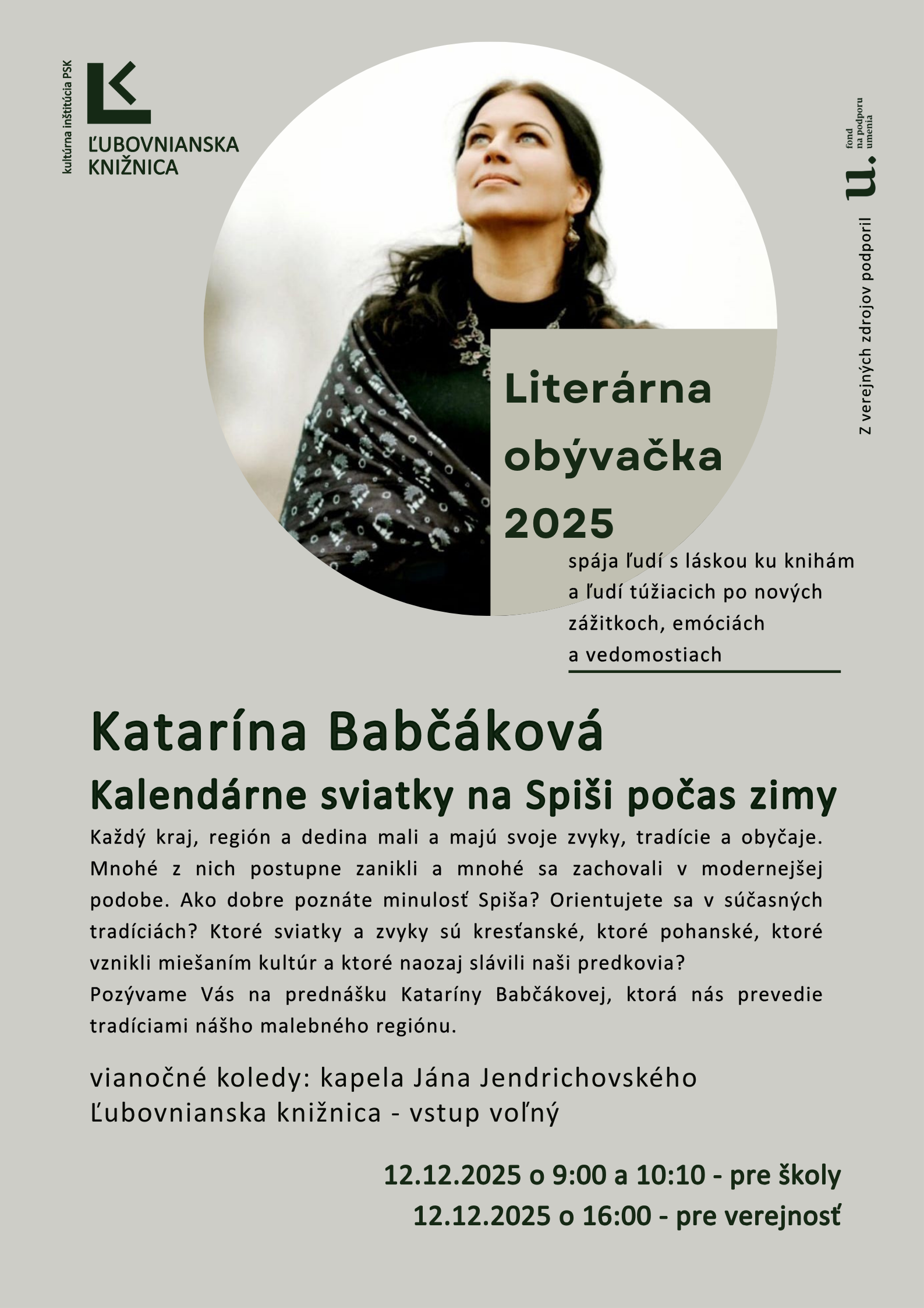 Etnografka Katarína Babčáková nás prevedie tradíciami a zvykmi v minulosti na Spiši počas zimy. Zorientuje nás v súčasných tradíciách a vysvetlí nám, ktoré sviatky a zvyky sú kresťanské, ktoré sú pohanské a ktoré sú amerikanizované. Príďte spoznať tradičné obyčaje malebného spišského regiónu počas zimných mesiacov.