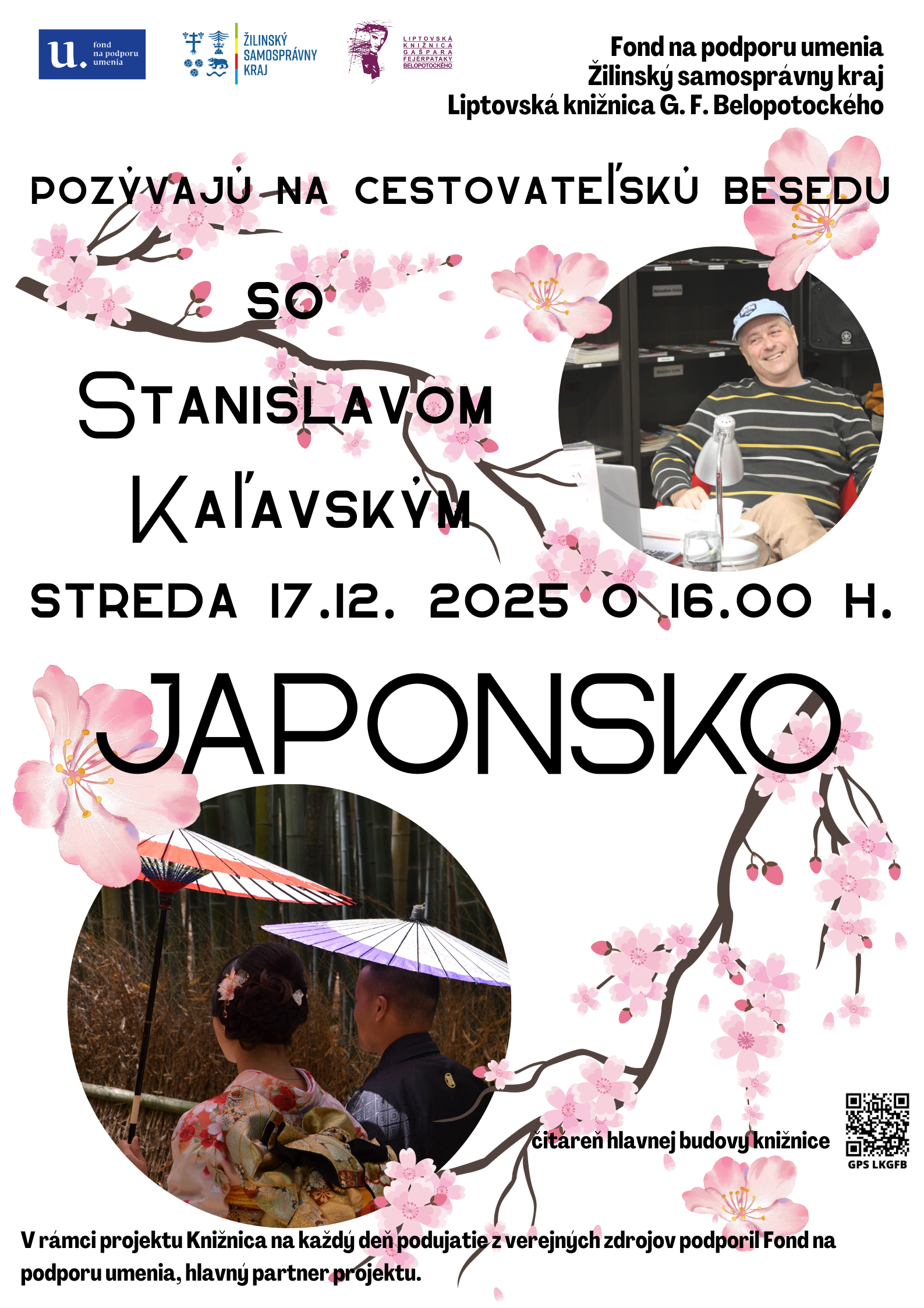 Japonsko - beseda o cestovaní so Stanislavom Kaľavským; 17. december 2025 o 16.00 hod. v multimediálnom úseku Liptovskej knižnice GFB