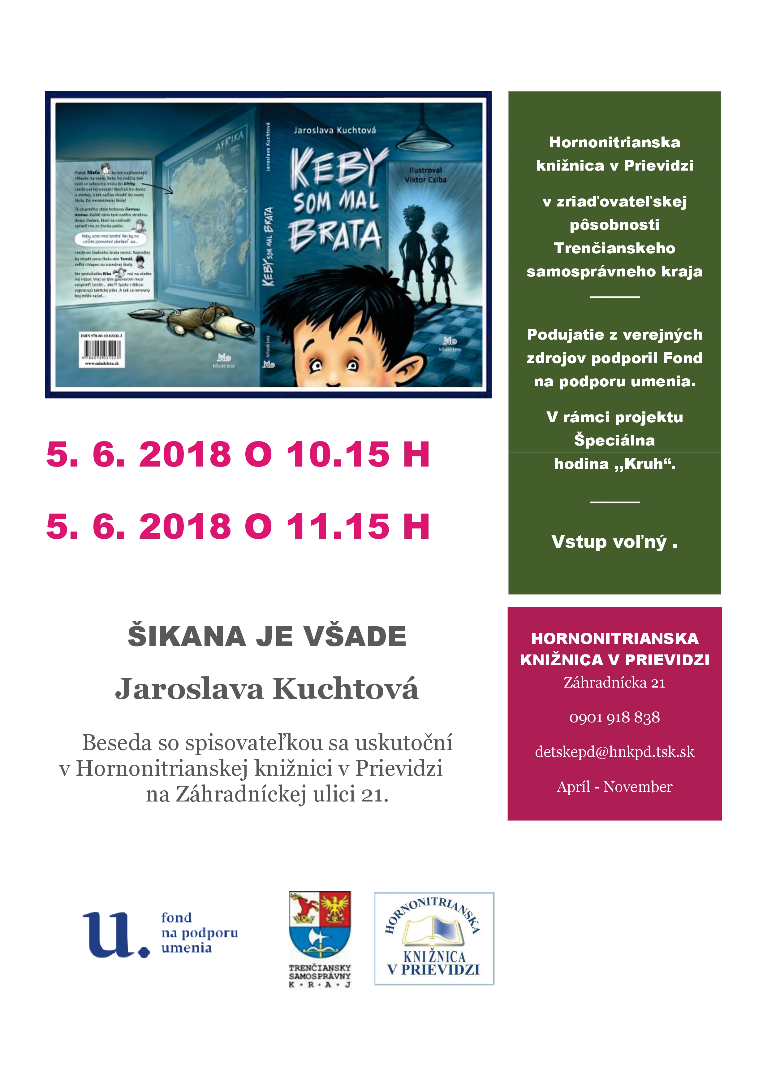 Literárny projekt pravidelných stretnutí so slovenskými autorkami a autormi, ktorí sa venujú tvorbe pre deti, mládež i dospelých. Podujatie z verejných zdrojov podporil Fond na podporu umenia, ktorý je hlavným partnerom projektu. Cieľom projektu je podpora čítania, výchova k literárnemu a ilustračnému umeniu a formovanie pozitívneho vzťahu čitateľov k rodnému jazyku.