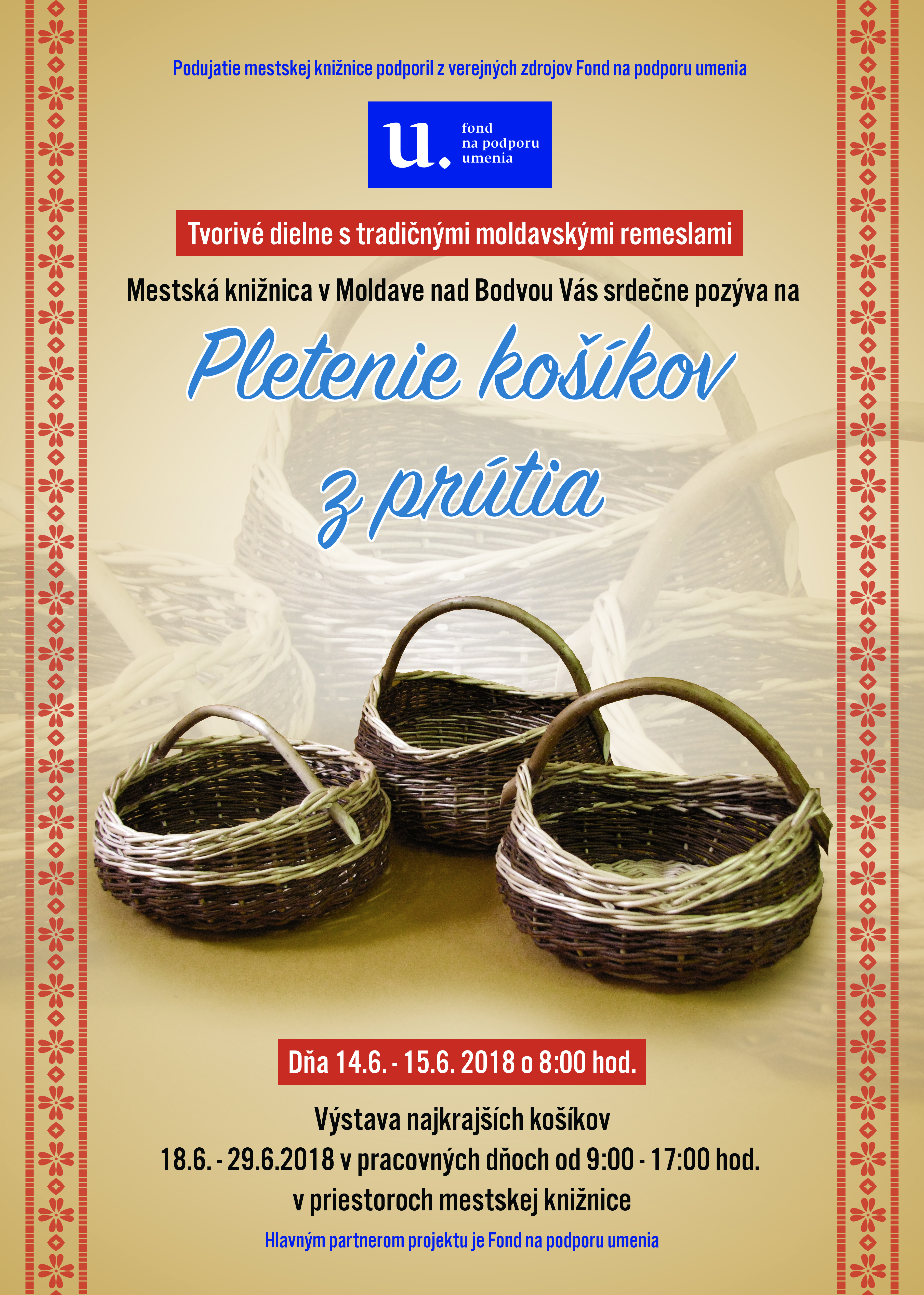 Projekt "Tvorivé dielne s tradičnými moldavskými remeslami 2.ročník" je zameraný na prezentáciu tradičných remesiel, ktorým sa obyvatelia mesta Moldava nad Bodvou v minulosti venovali a ktorým je venované Etnografické múzeum.