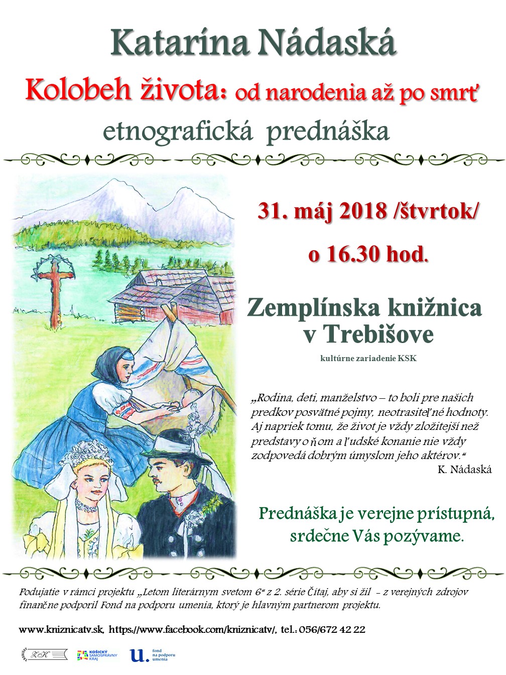 Prednáška s názvom Prostredie v ktorom žijeme sa uskutočnila 31. mája v knižnici Palárikovo.Hlavným partnerom podujatia bol Fond na podporu umenia , spolupracovala aj obec Palárikovo-Knižnica.Podujatie z verejných zdrojov finančne podporil Fond na podporu umenia.