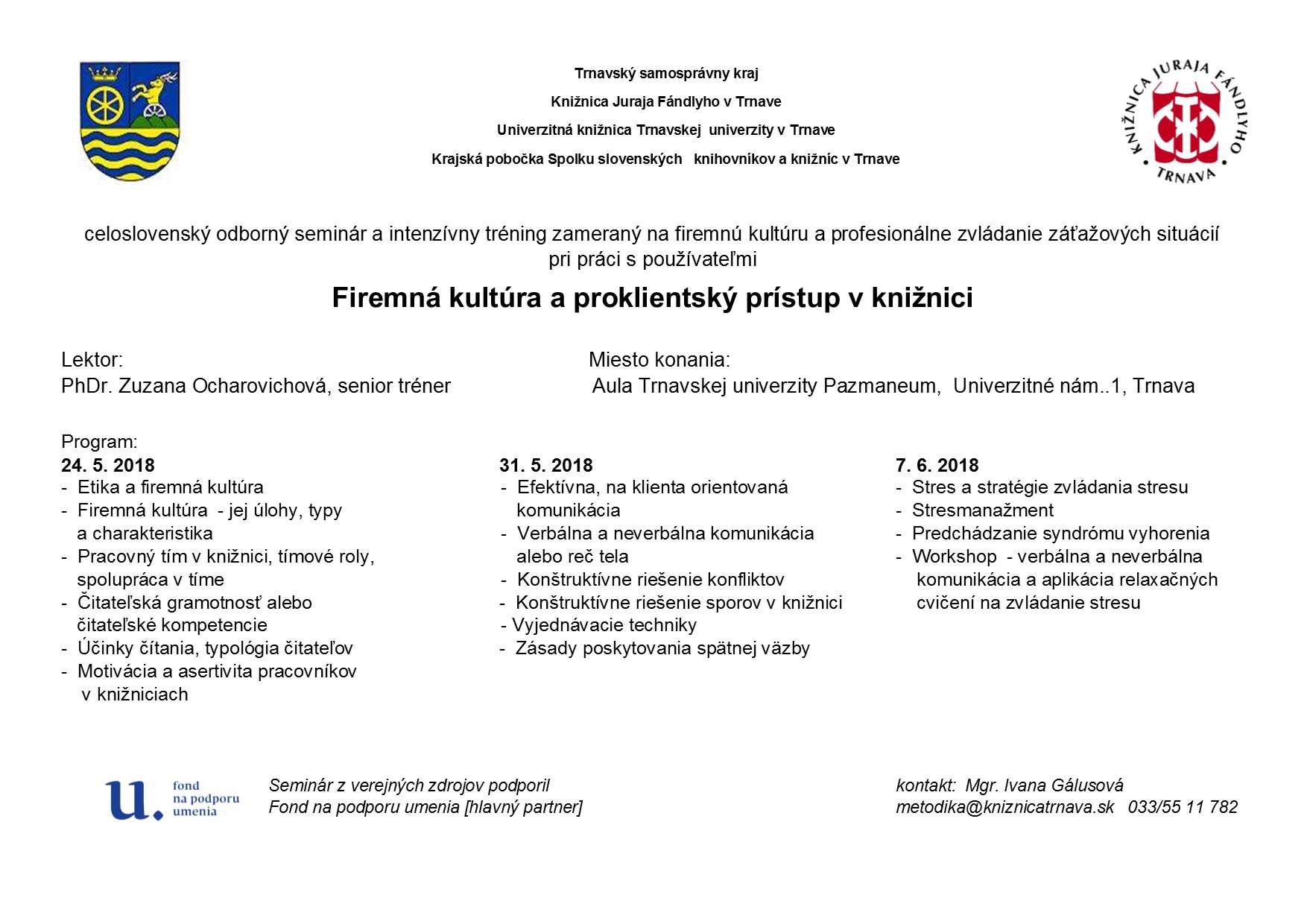 Celoslovenský odborný seminár a intenzívny tréning zameraný na firemnú kultúru a profesionálne zvládanie záťažových situácií pri práci s používateľmi