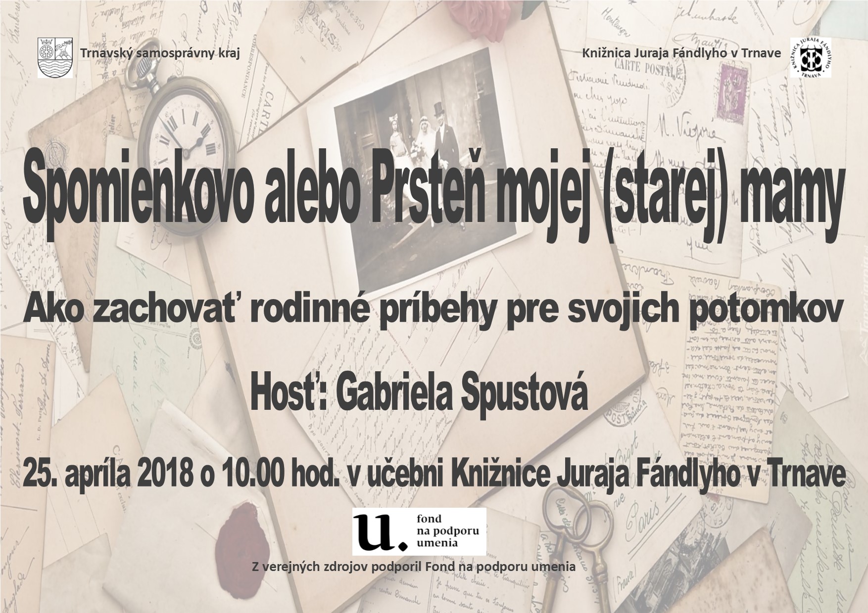Beseda sa koná o 17.00 hod v čitárni Knižnice Juraja Fándlyho v Trnave
