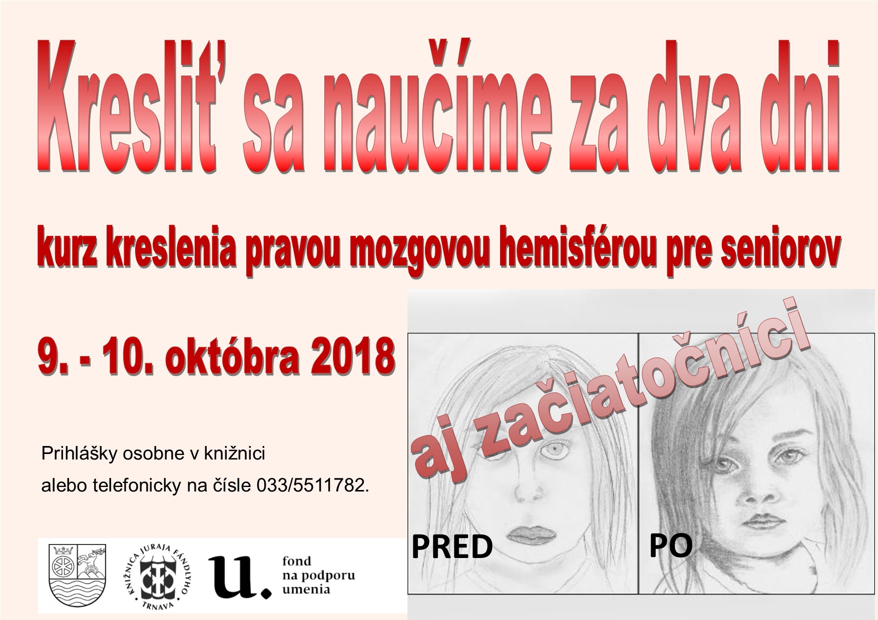 Dvojdňový základný kurz kreslenia ceruzkou. Za dva dni sa naučíte ovládať ceruzku a papier, zároveň získate zaujímavé poznatky o fungovaní mozgu.Kurz sa koná 9. 10. - 10. 10. 2018 od 9.00 hod - 17.00 hod.
