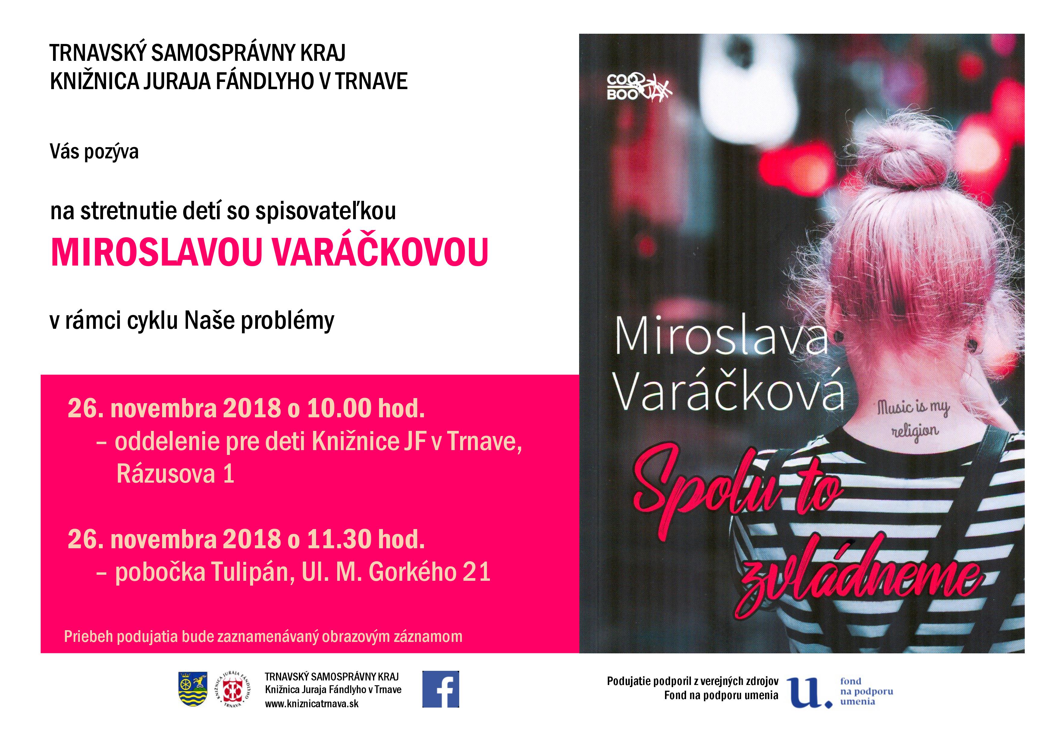 Beseda s autorkou knihy Spolu to zvládneme Miroslavou Varáčkovou. Autorka sa v knihe venuje problémom dospievajúcich teenagerov.