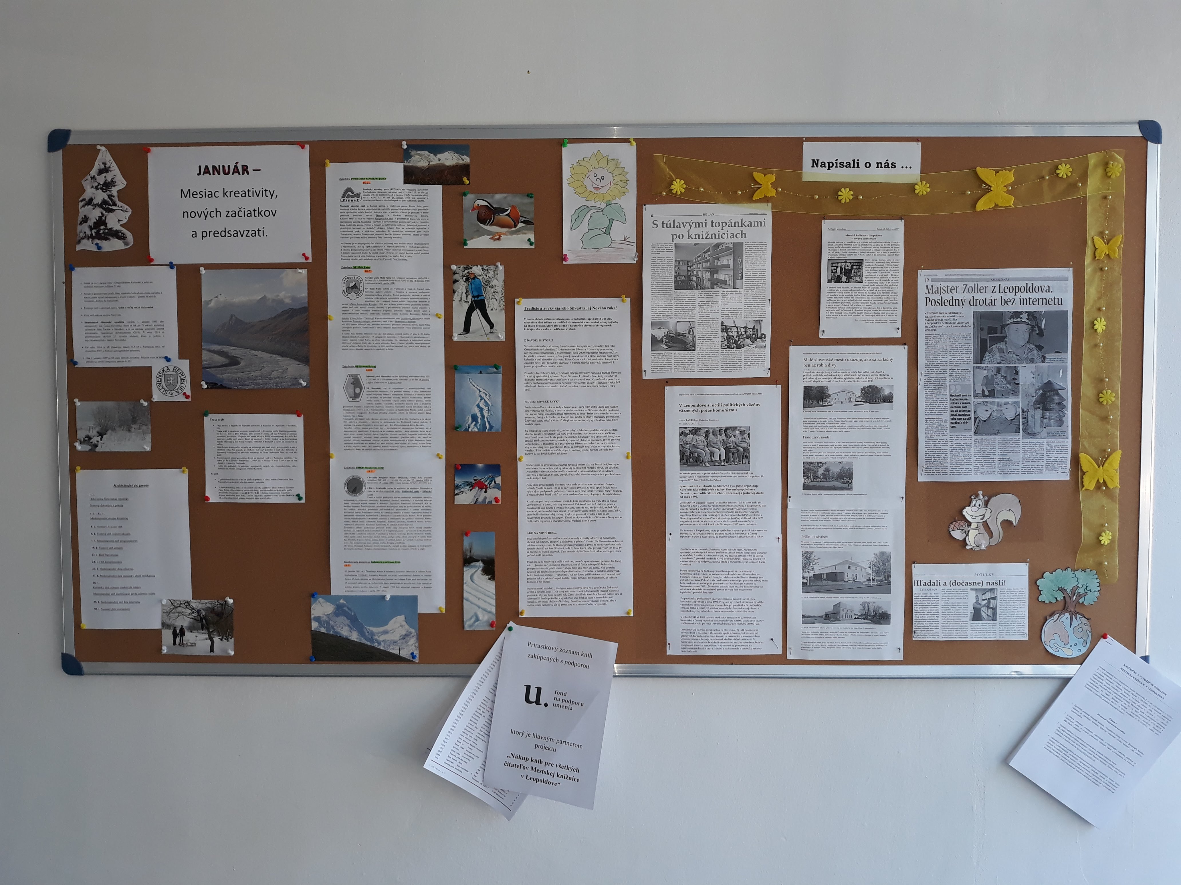 Facebookový profil školy: Zš Matice Slovenskej Webová stránka školy: zsmaticeslovenskej.sk Nálepky s logom fondu nalepené v knihách Samostatný regál s logom fondu.