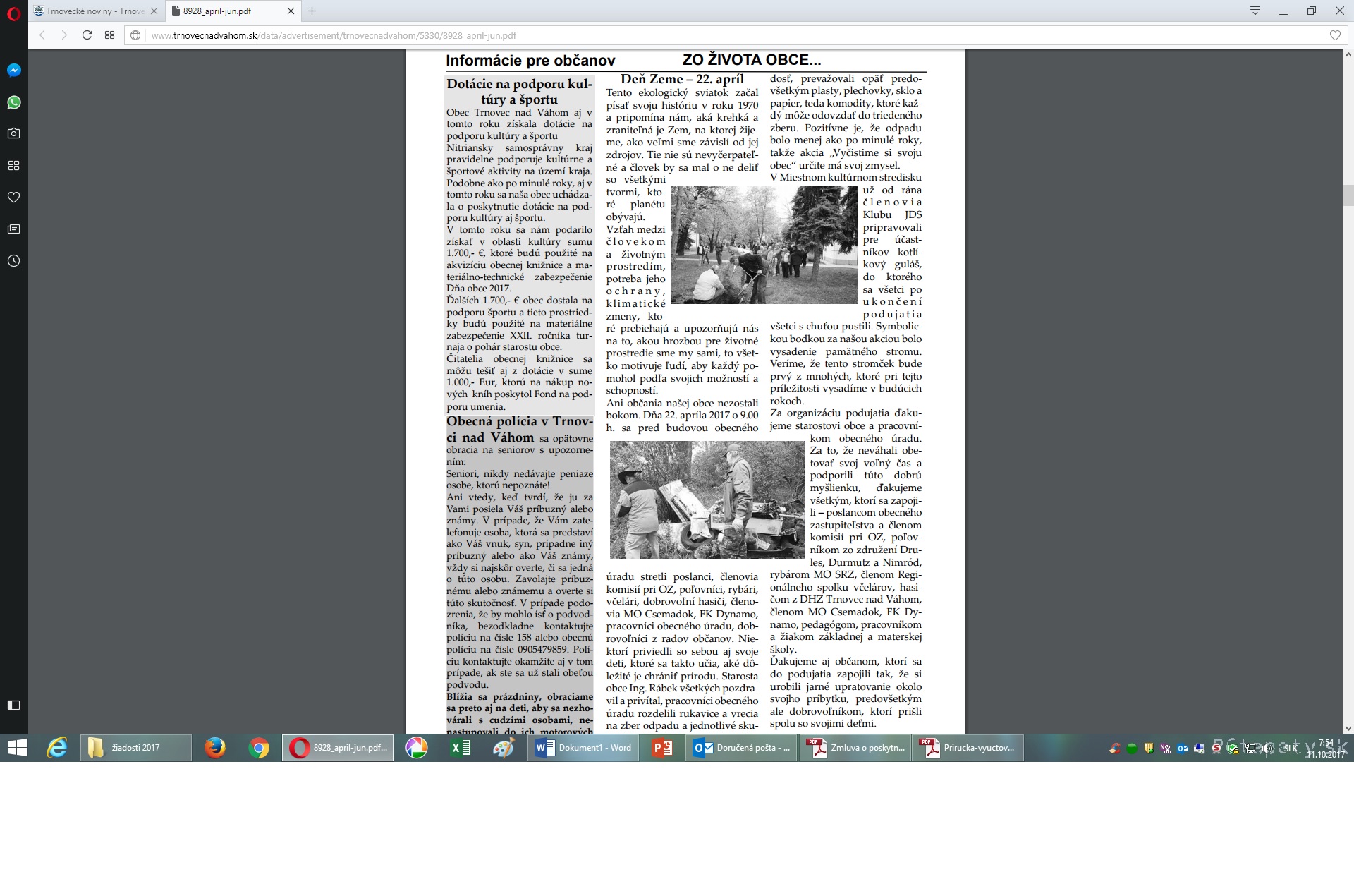 Informácia o získaní dotácie bola zverejnená v obecných novinách aj na webovej stránke obce
