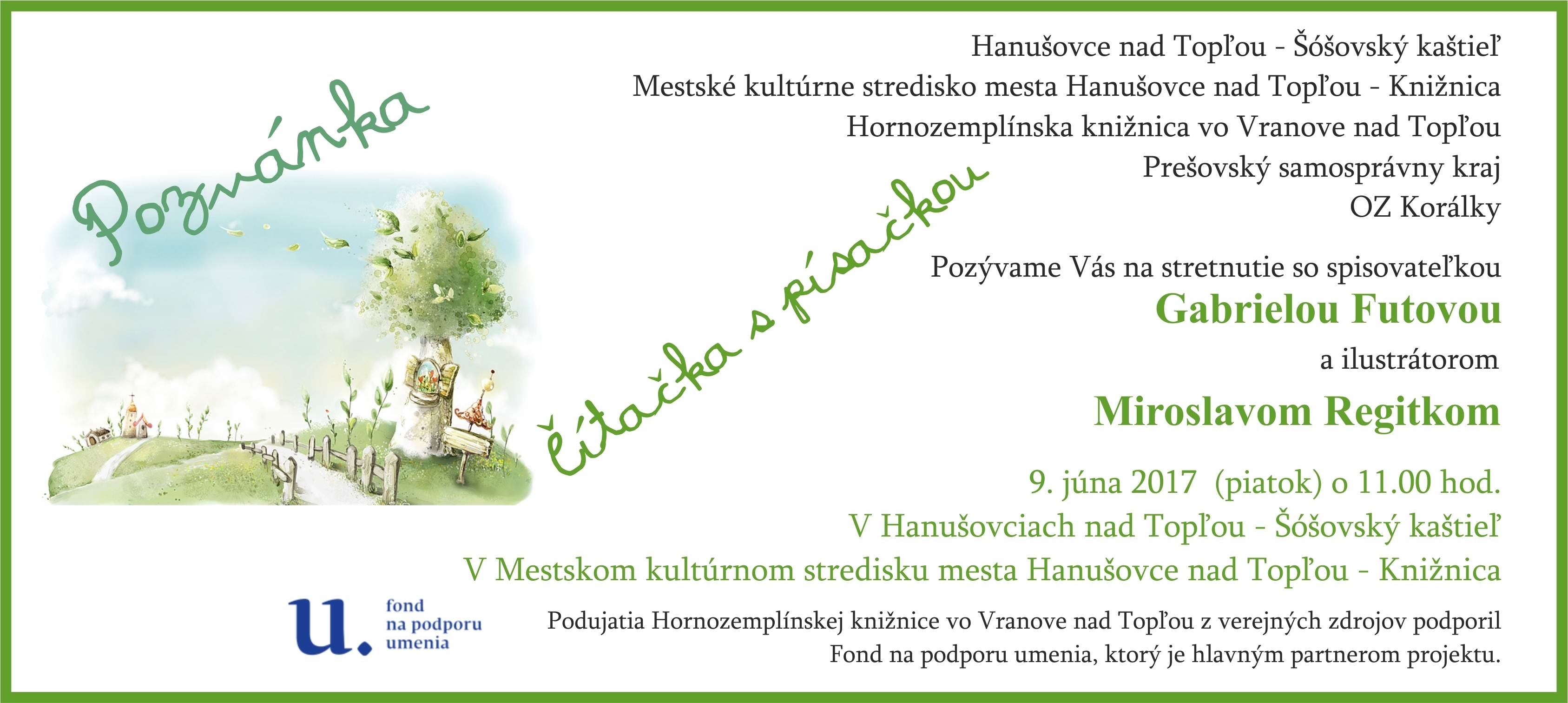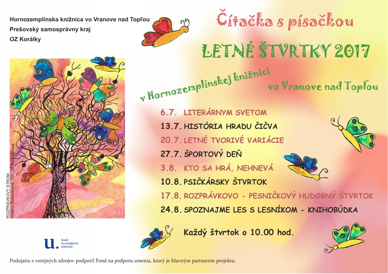 Projekt pre deti a mládež vranovského regiónu, ktorého zámerom je rozvoj čitateľskej gramotnosti prostredníctvom čítania, zvýšenia záujmu o knihy, zlepšenia jazykových zručnosti, prejavu a voľnočasových aktivít. Cieľom projektu je prehlbovať záujem o kvalitnú literatúru, slovenský jazyk a o prezentáciu vlastnej literárnej a výtvarnej tvorby.