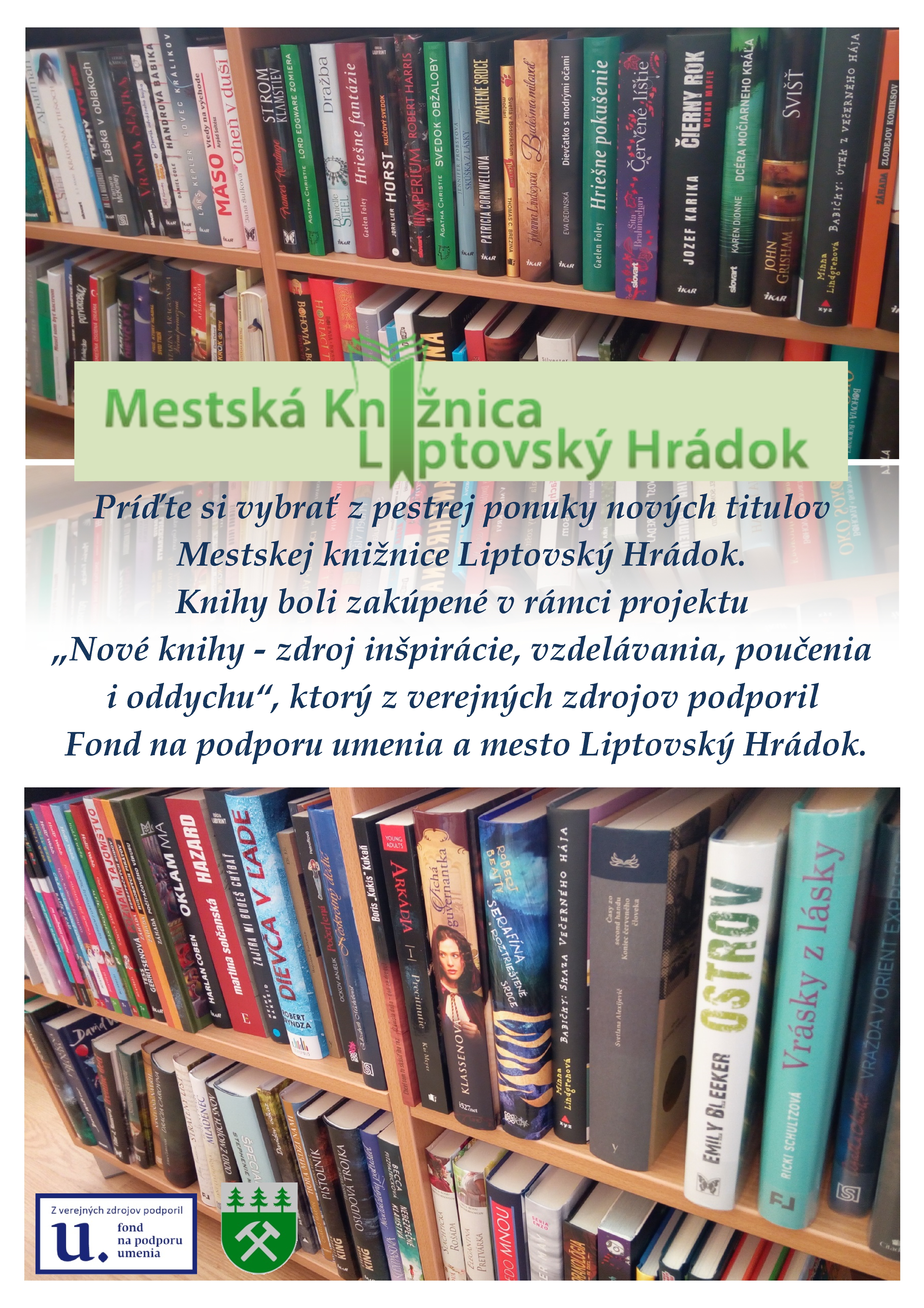 Miestna knižnica v Pukanci vďaka podpore Fondu na podporu umenia rozšírila knižničný fond o knižné publikácie, vhodné pre rôzne skupiny čitateľov. O nových knihách sa čitatelia dozvedajú aj na podujatiach.