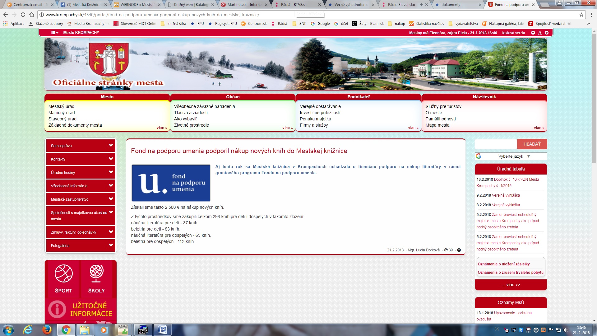 Zverejnenie oznamu - nákup kníh