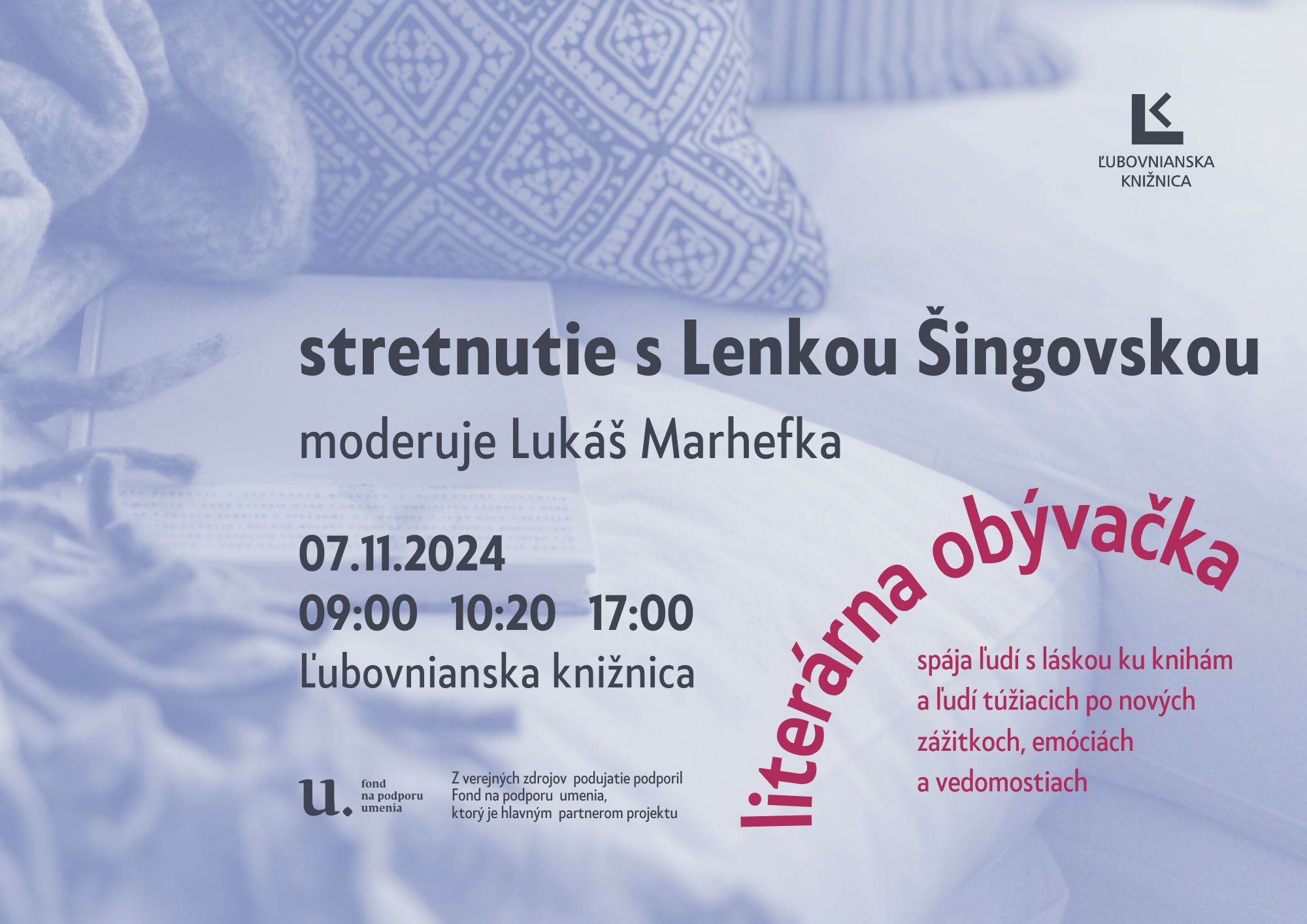Pozvanie do Literárnej obývačky prijala Lenka Šingovská - zakladateľka vydavateľstva Class a zakladateľka občianskeho združenia Class SLOVAKIA. Lenku Šingovskú sme pozvali, aby nám prišla predstaviť svoje slovensko-anglické knihy s tematikou mapovania kultúrneho, historického a prírodného bohatstva Slovenska a porozprávať nám o zážitkových projektoch, na ktoré sa v rámci svojich pracovných aktivít zameriava.